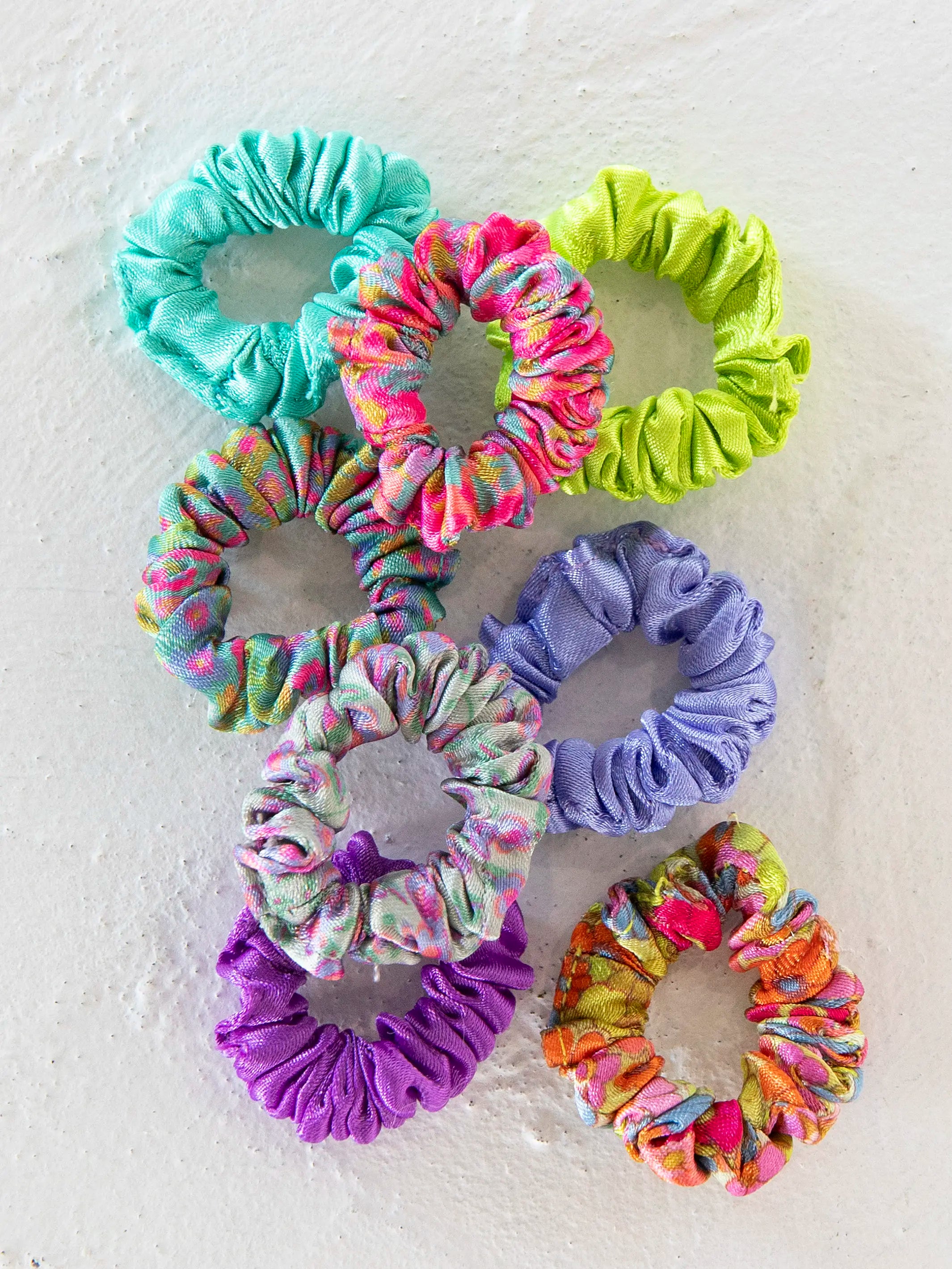 Mini Satin Scrunchie, Set of 8 - Rainbow