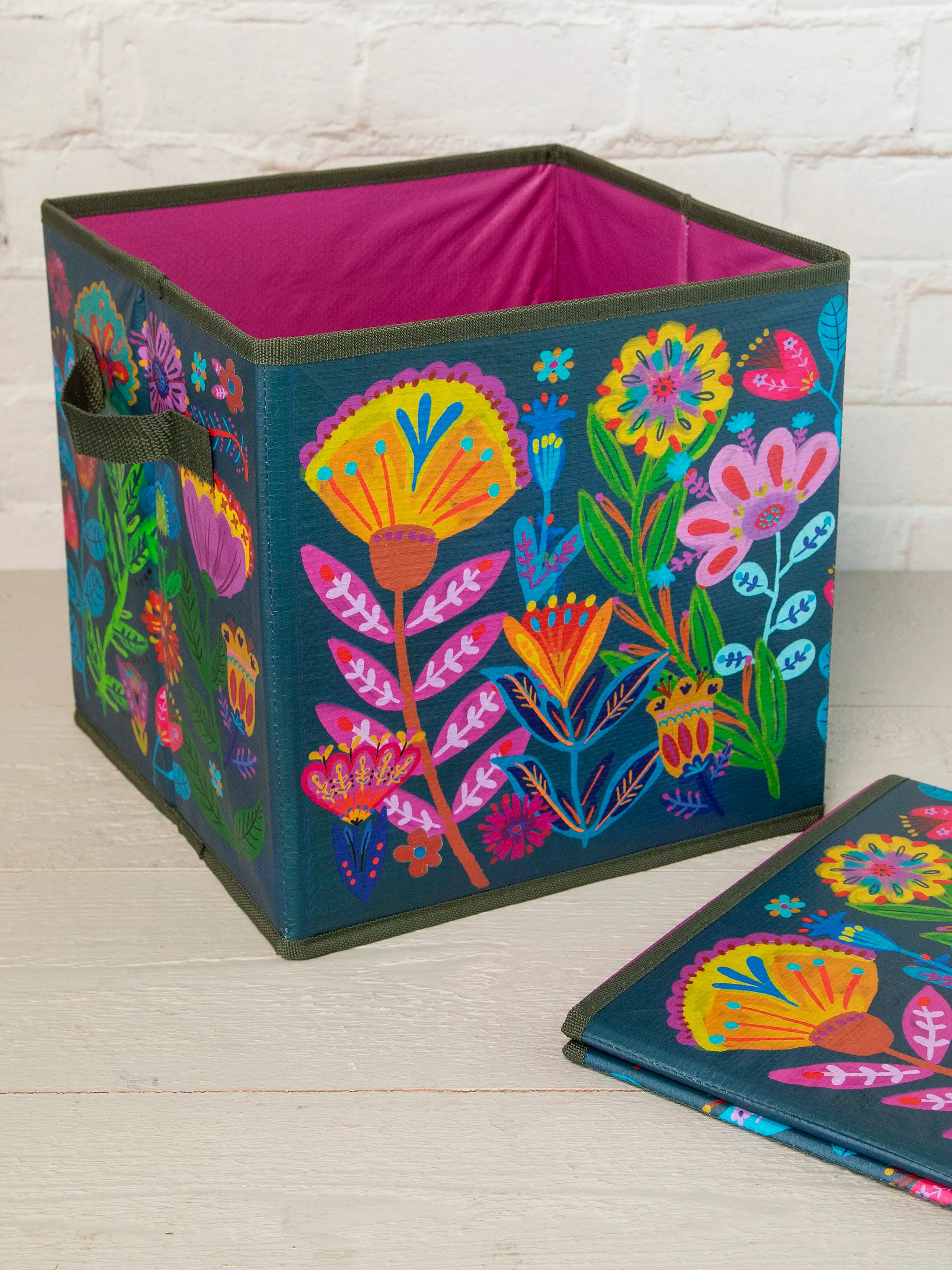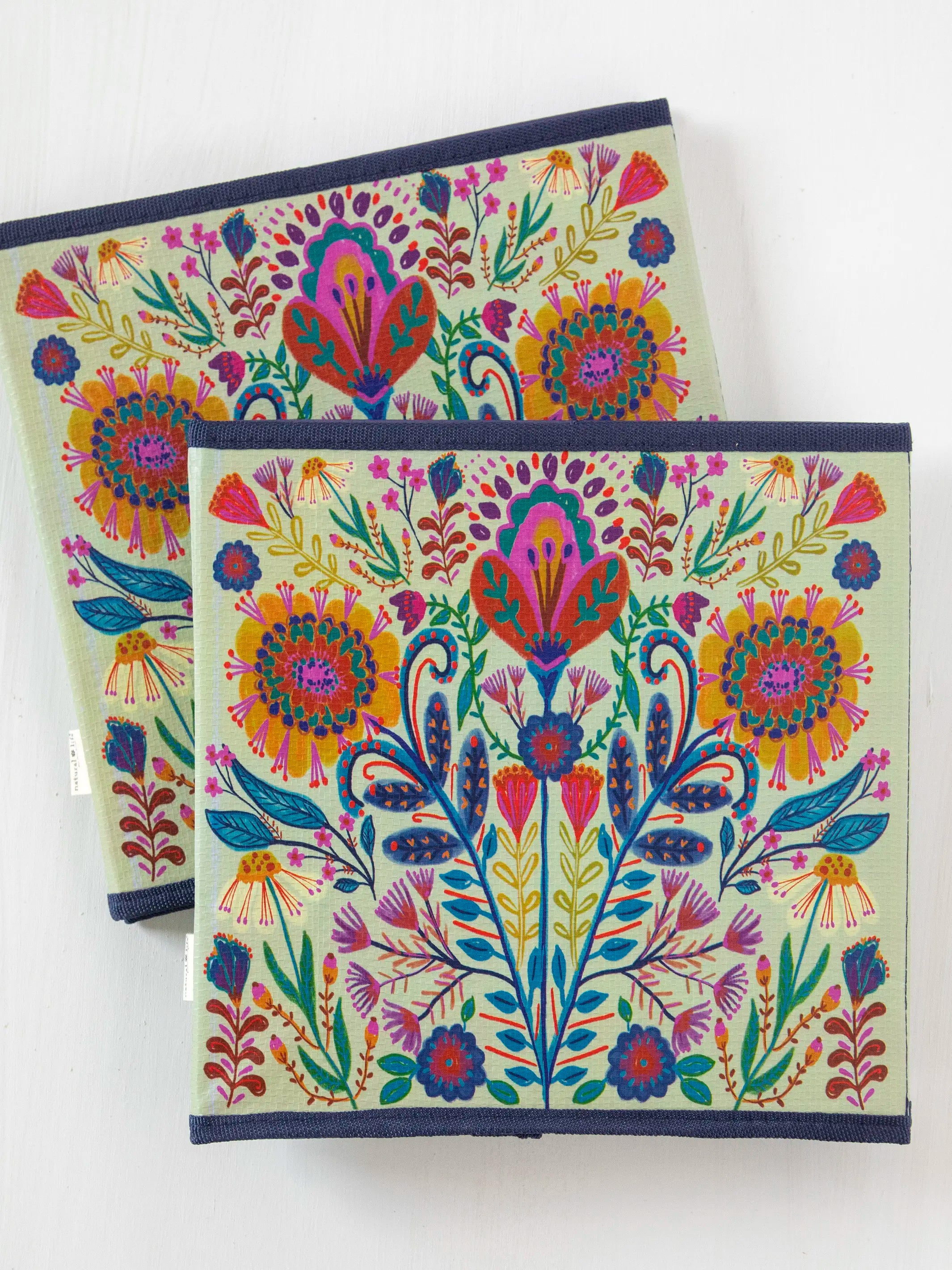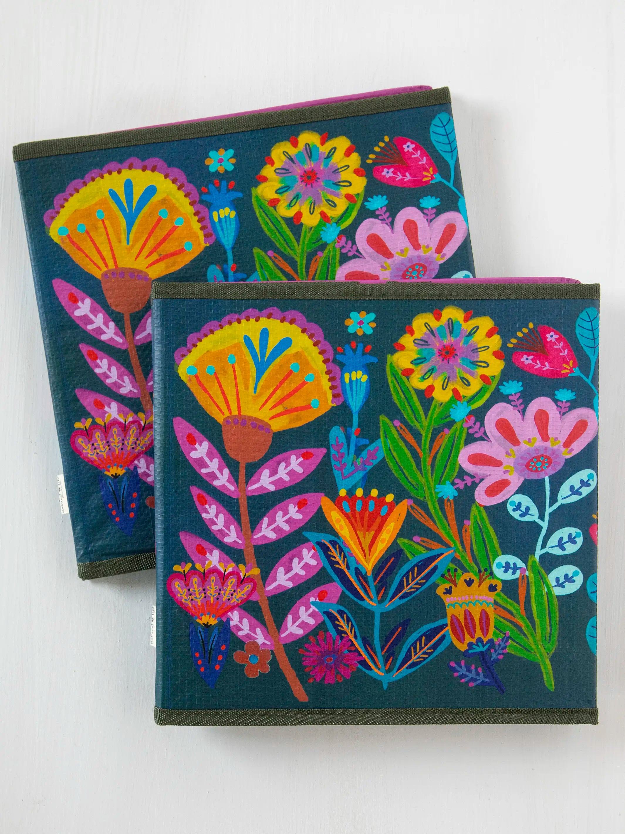 Collapsible Storage Cubes, Set of 2 - Rainbow Folk Flower