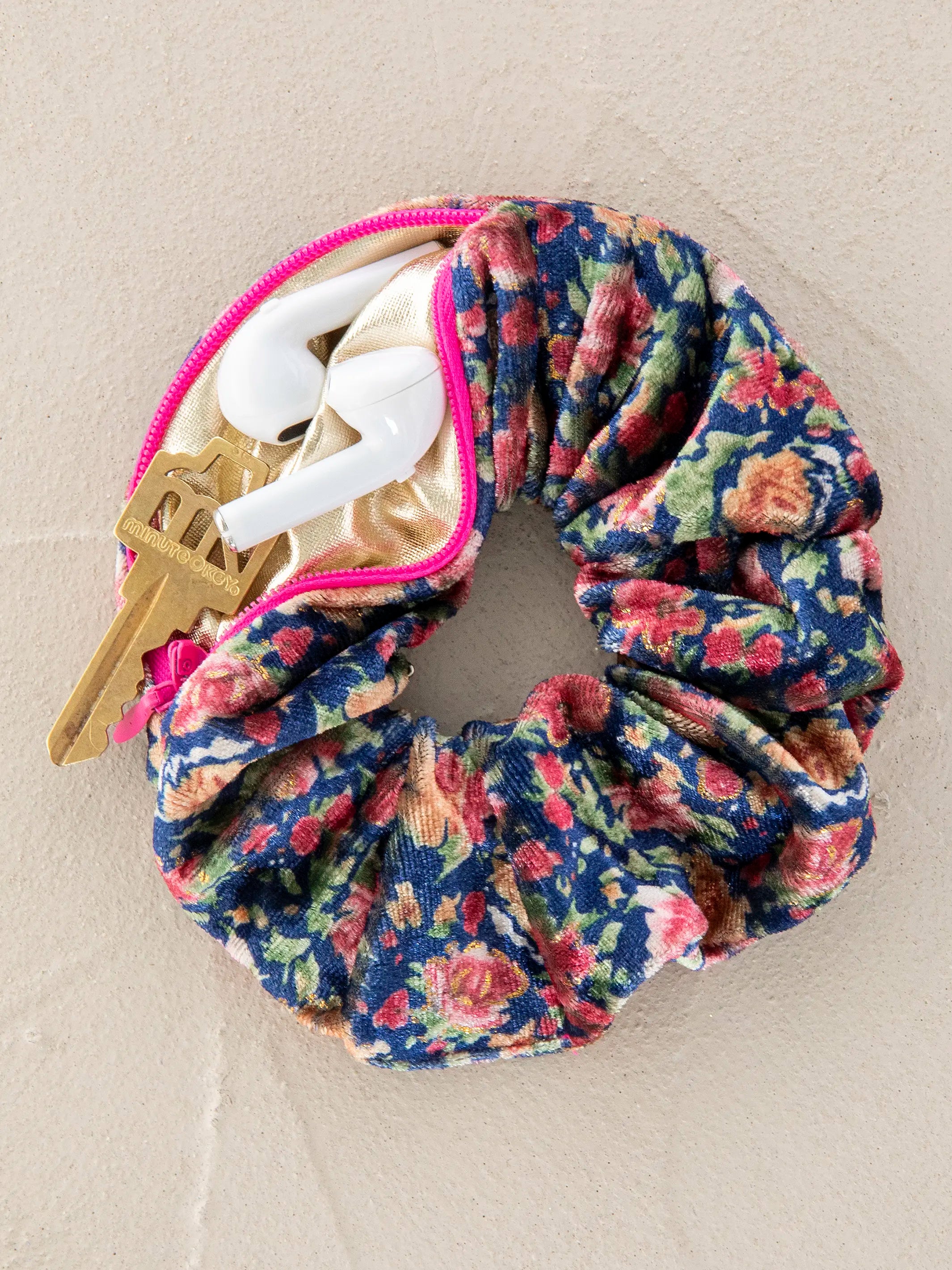 Hideaway Scrunchie - Navy Pink Roses