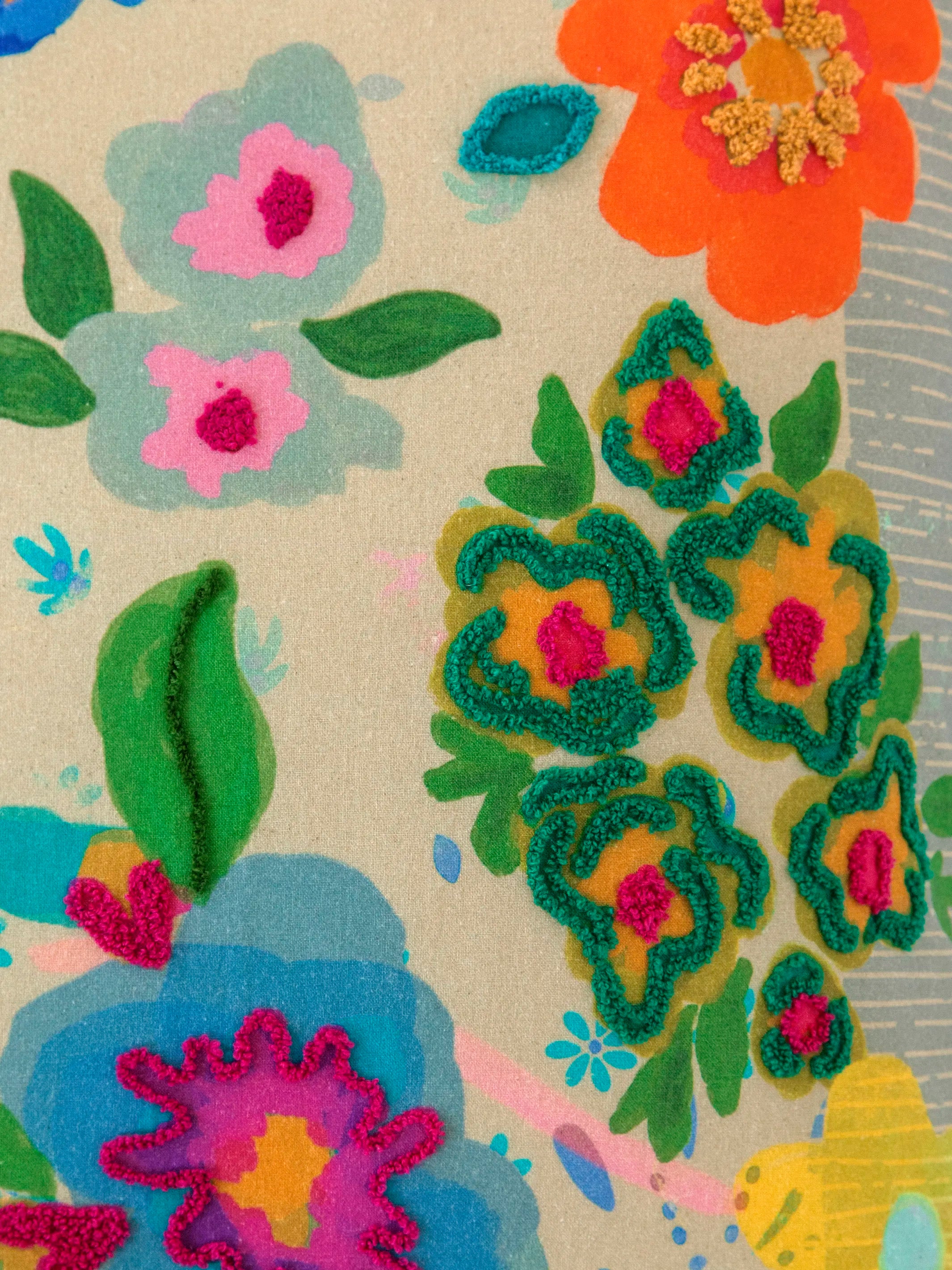 Tufted Backrest Pillow - Charcoal Folk Flower