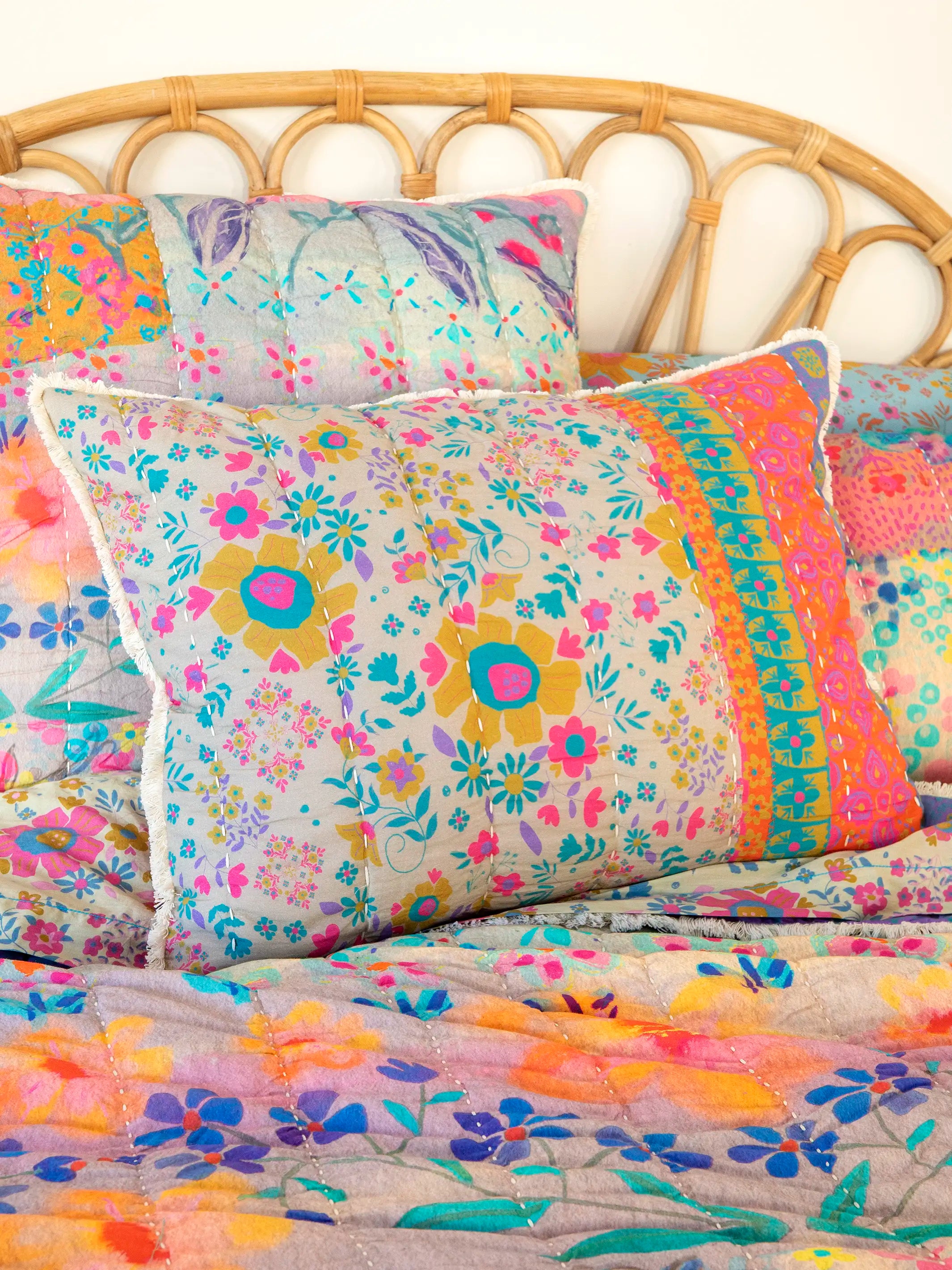 So Soft Cotton Reversible Euro Sham - Folk Flower Patchwork