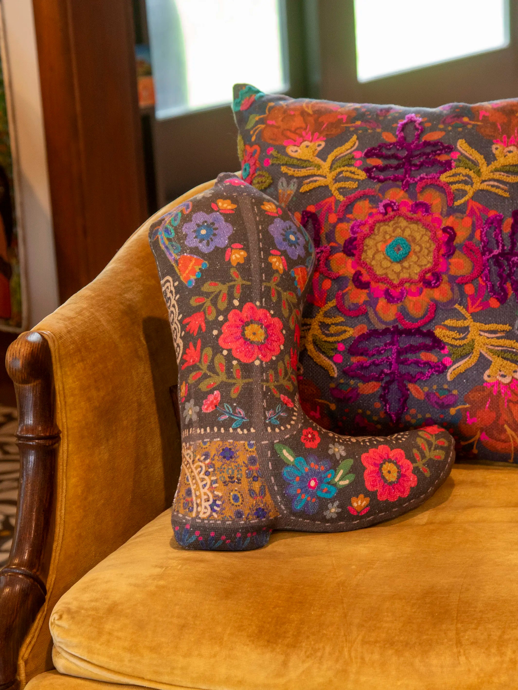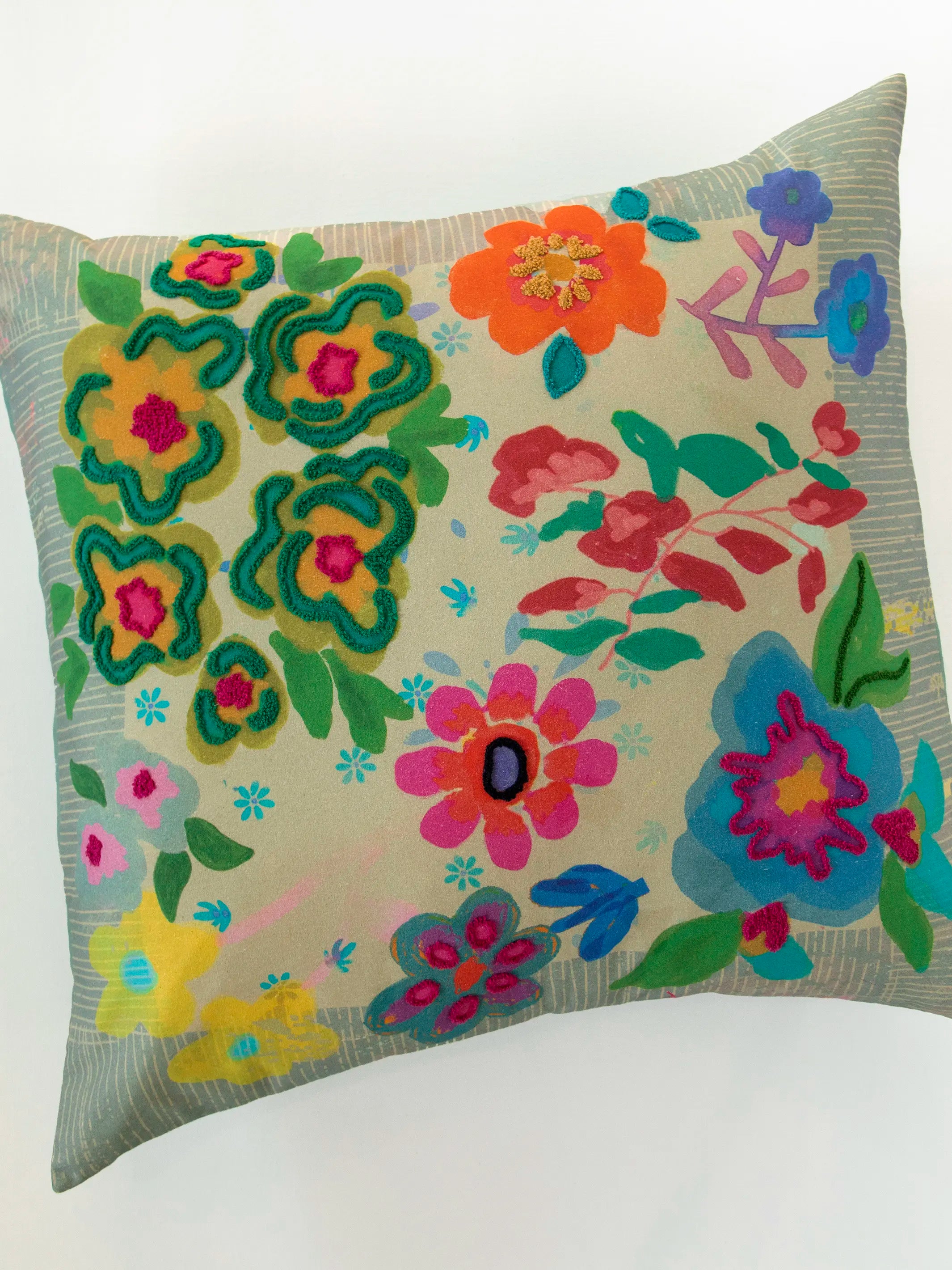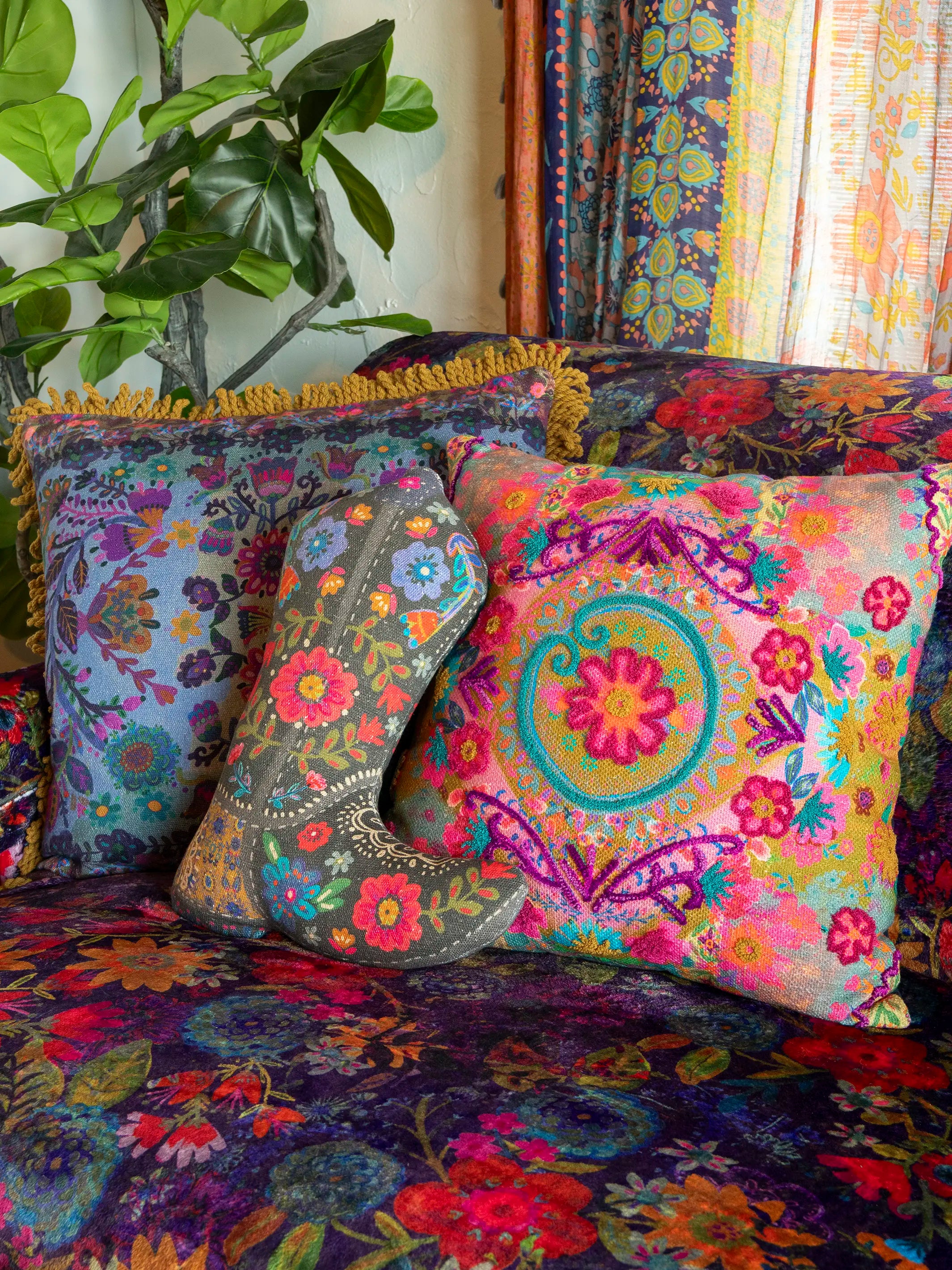 Tufted Bungalow Pillow - Charcoal Folk Flower