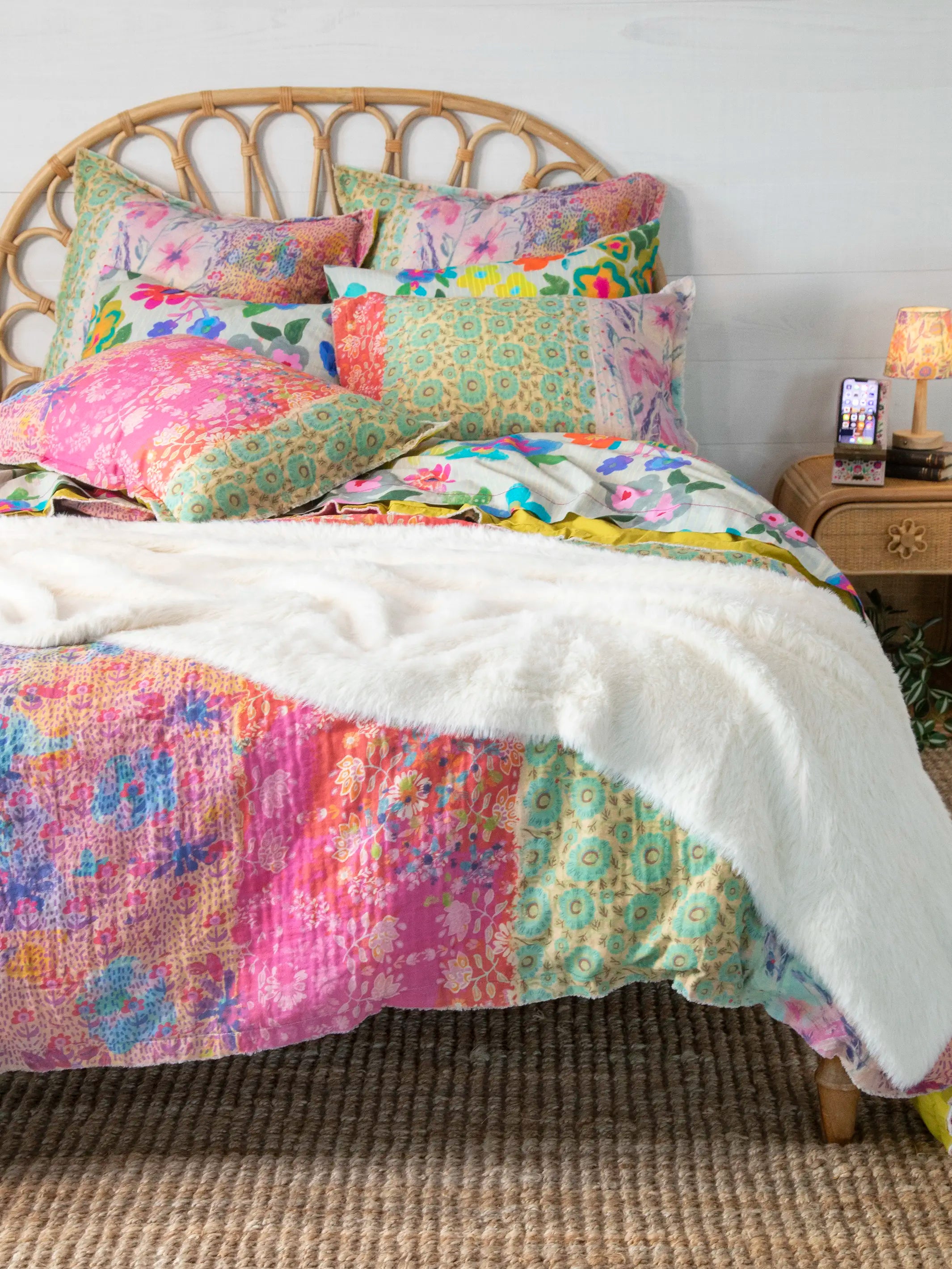 Double-Sided Cozy Throw Blanket - Bright Patchwork