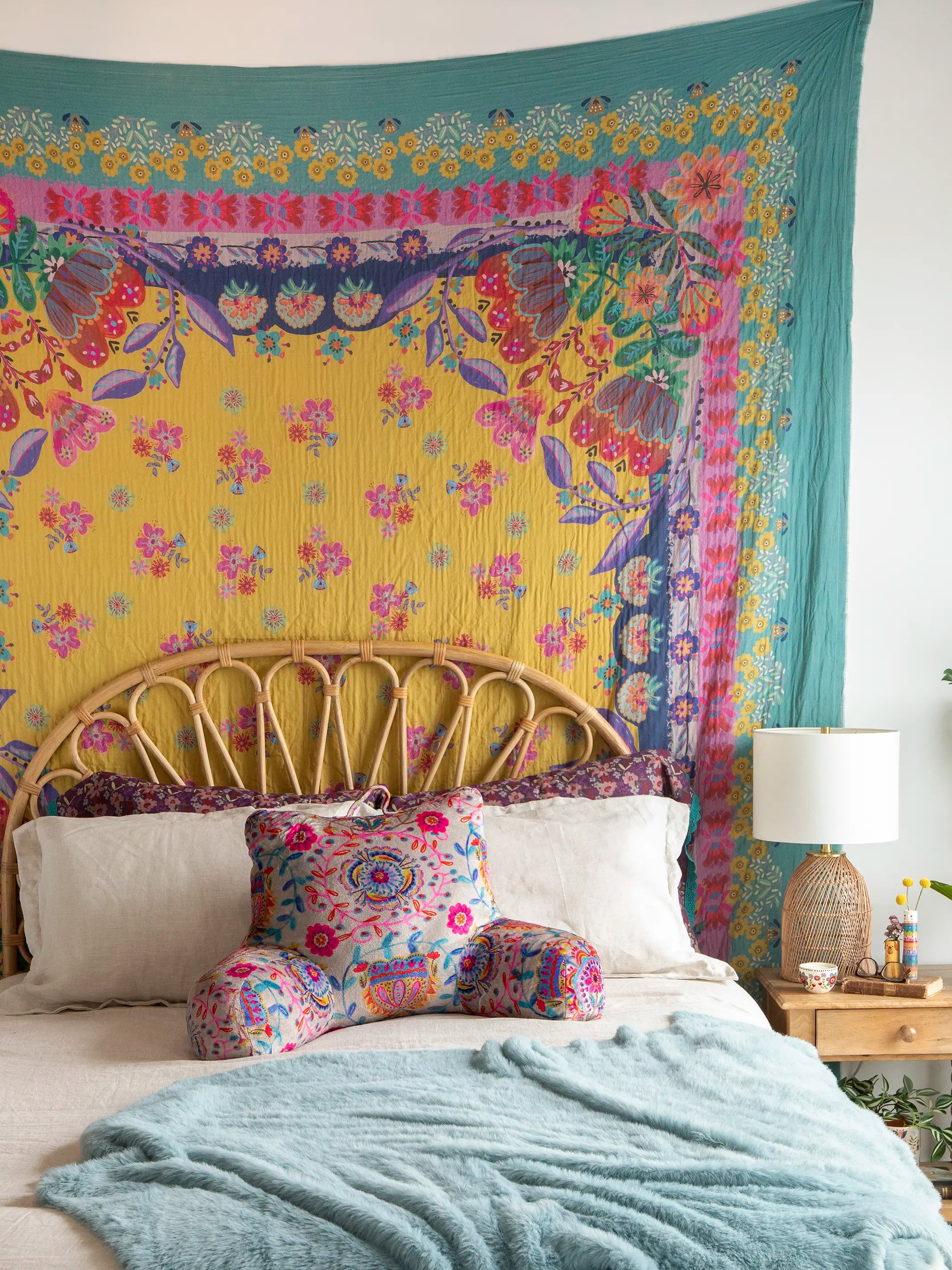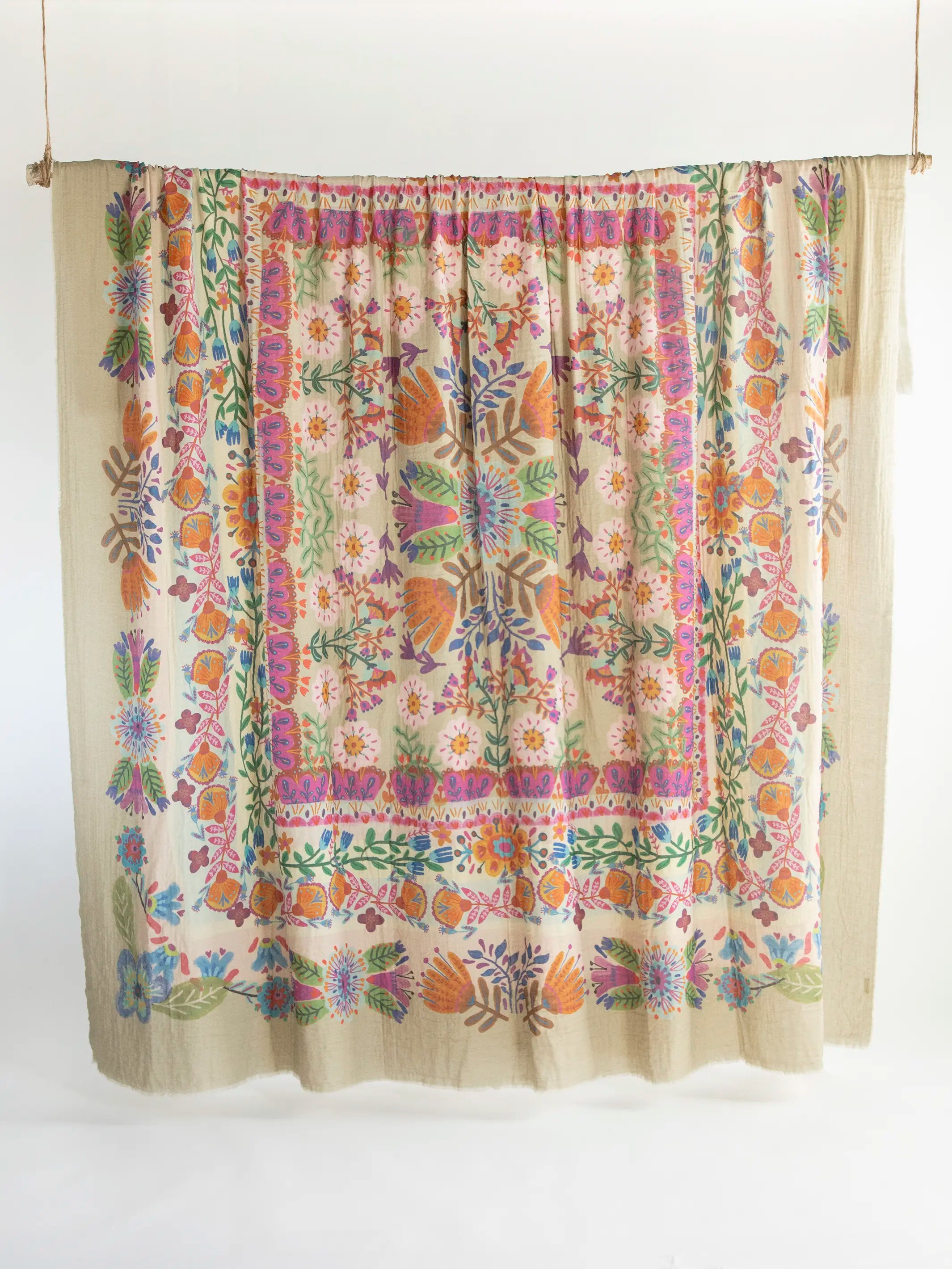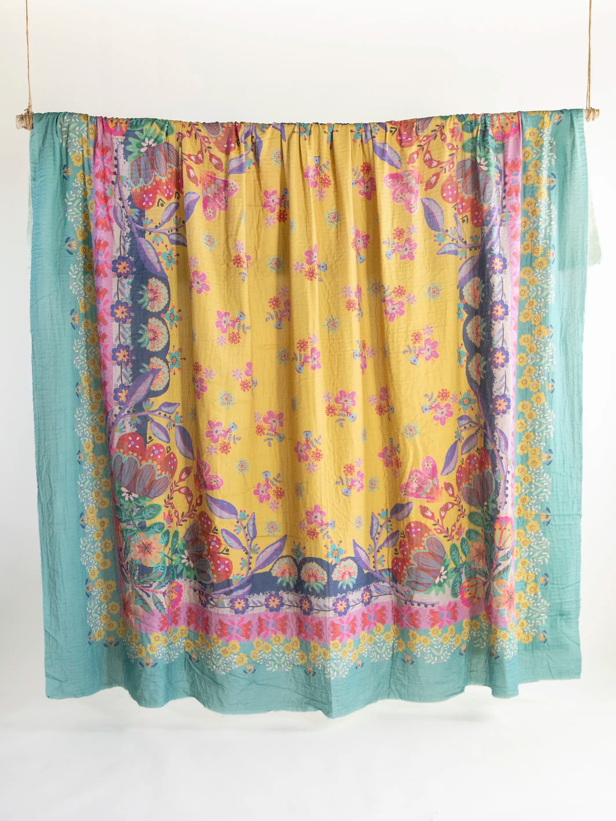 Gauze Tapestry Blanket - Dark Teal Borders