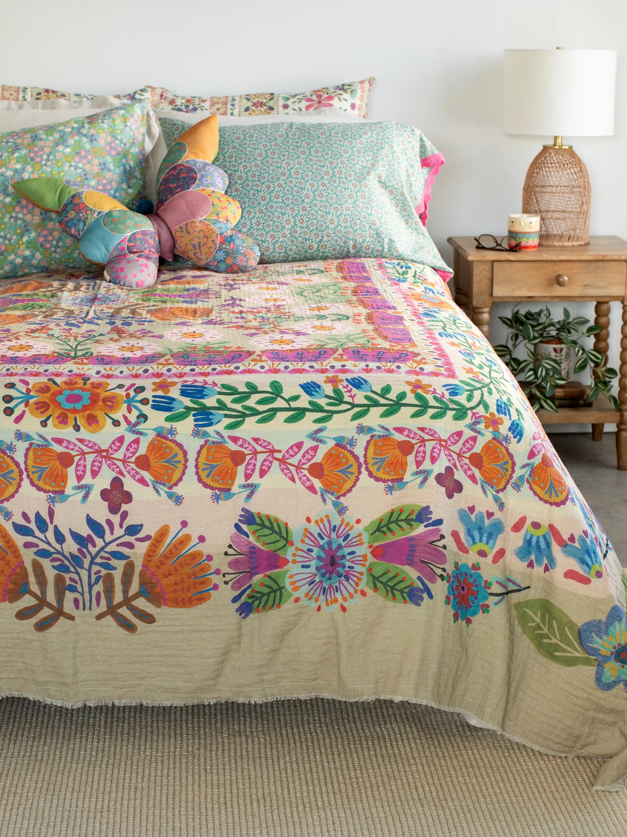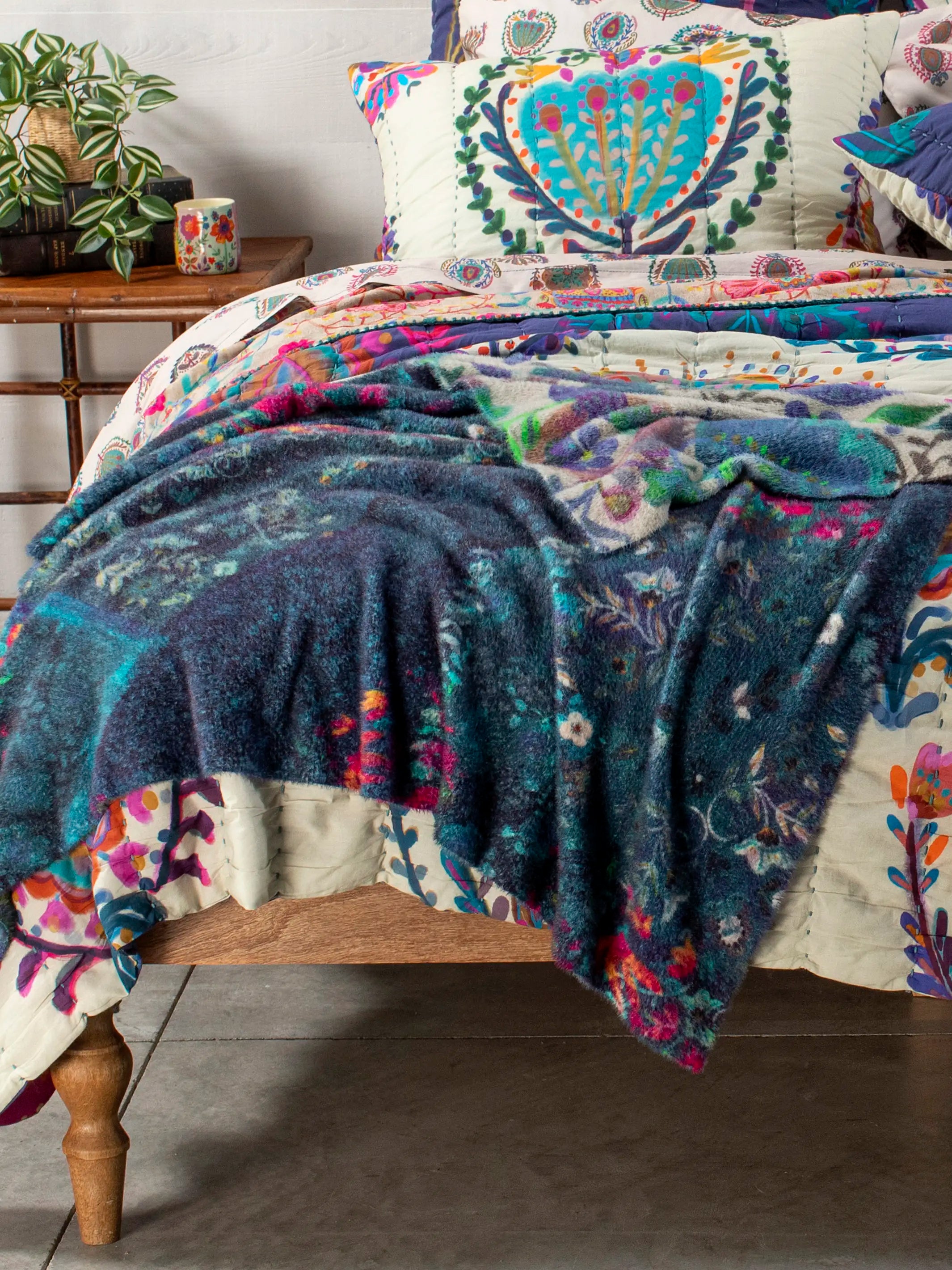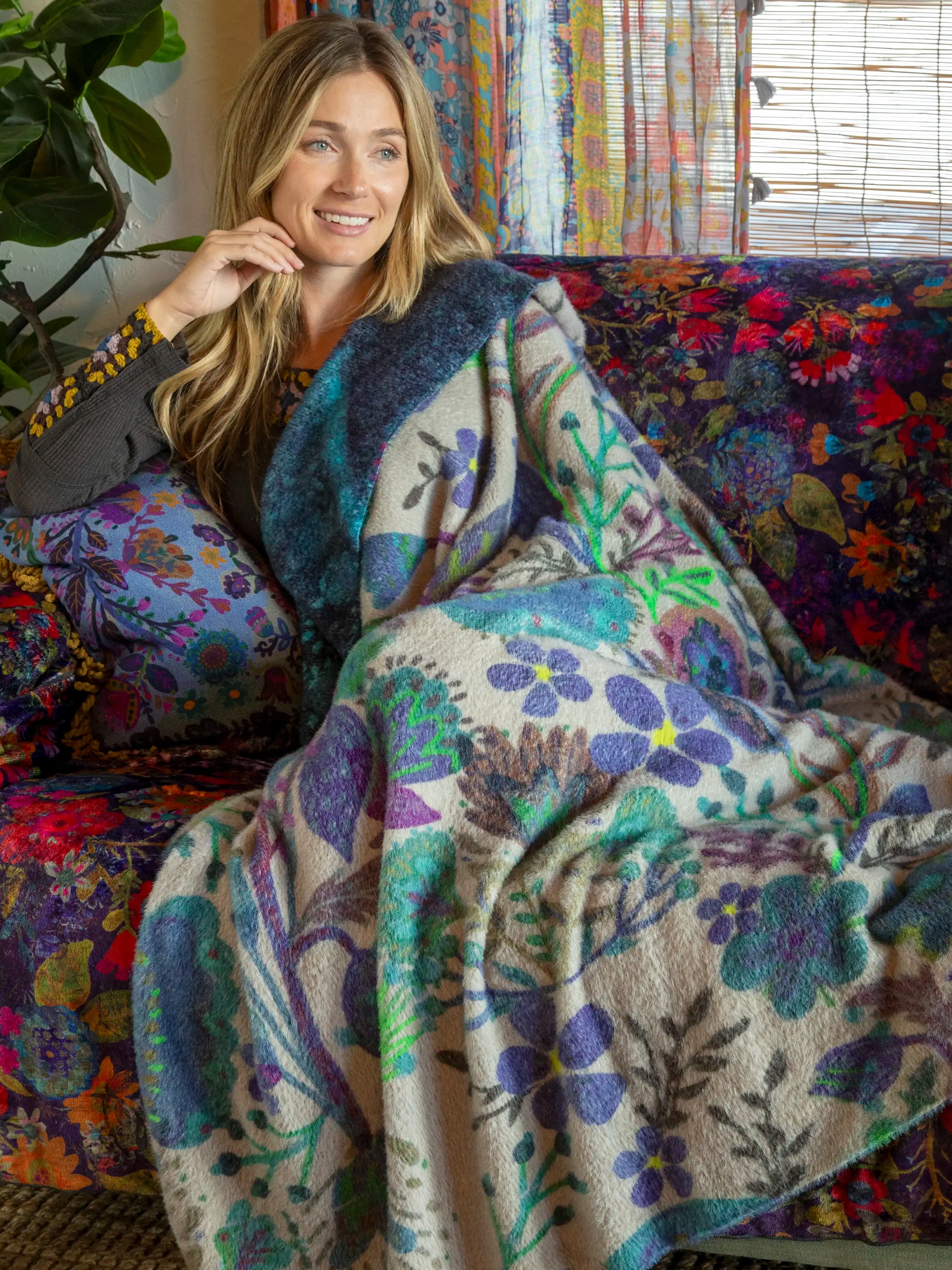 Double-Sided Cozy Throw Blanket - Border Folk Garden