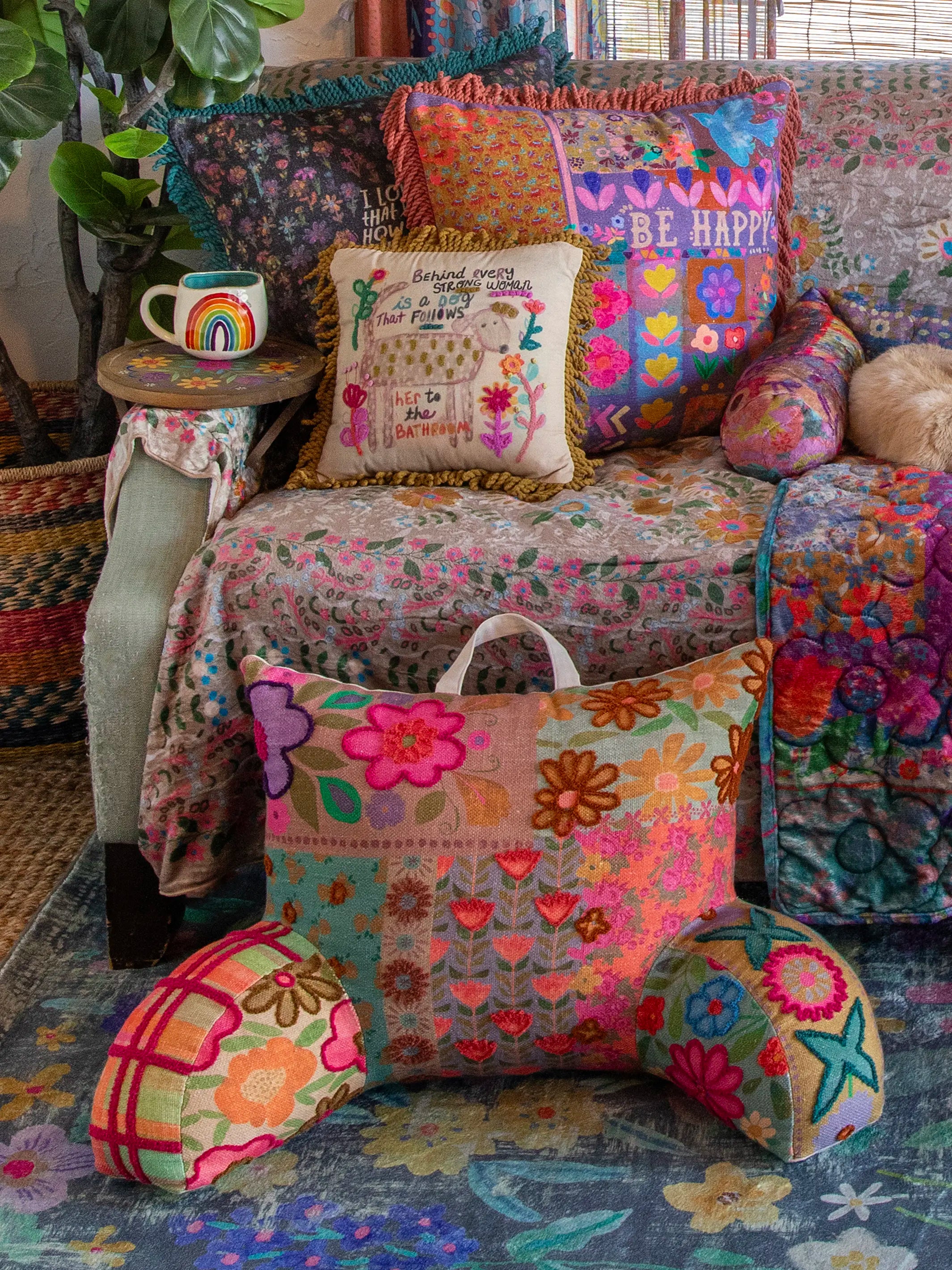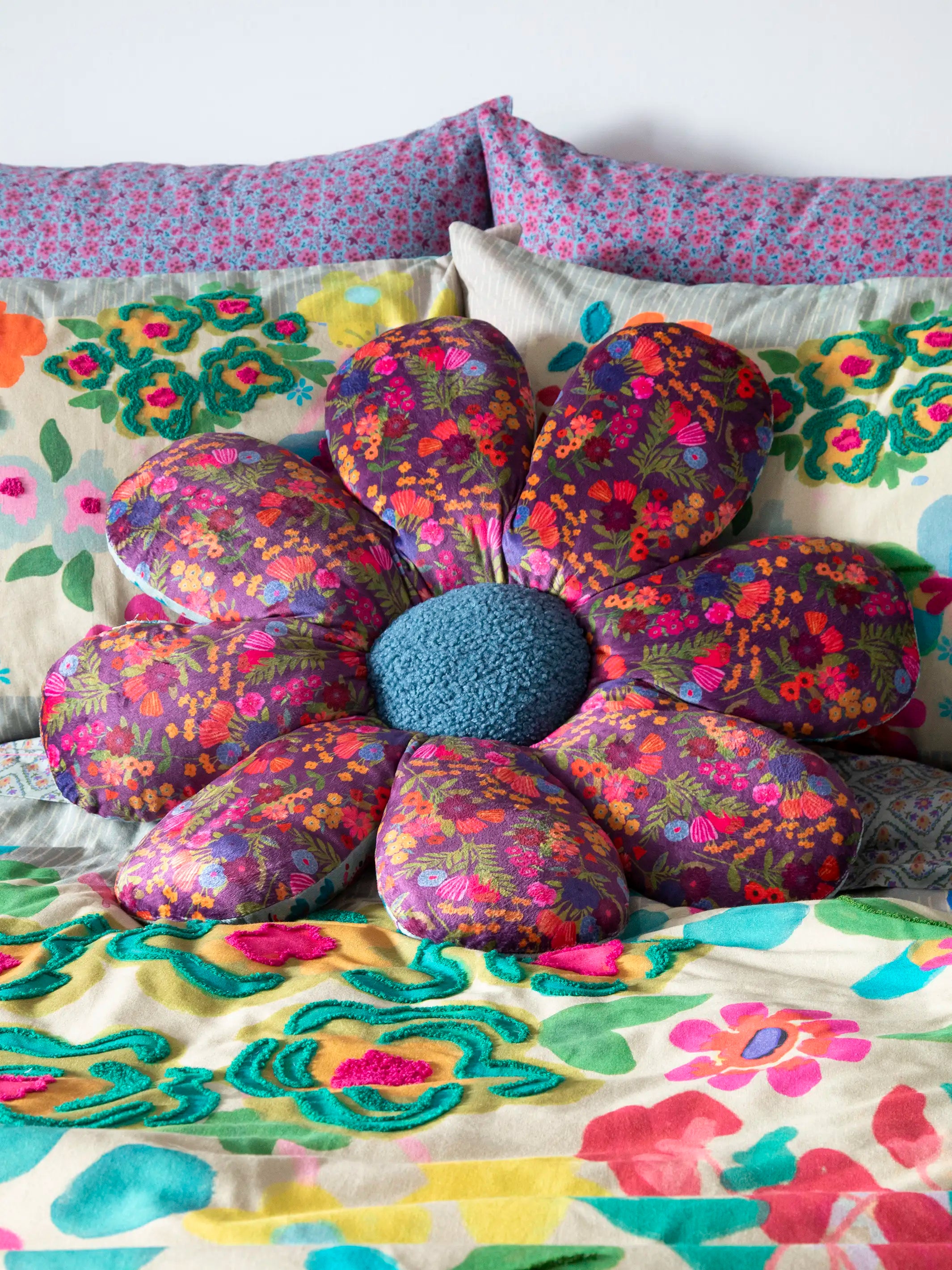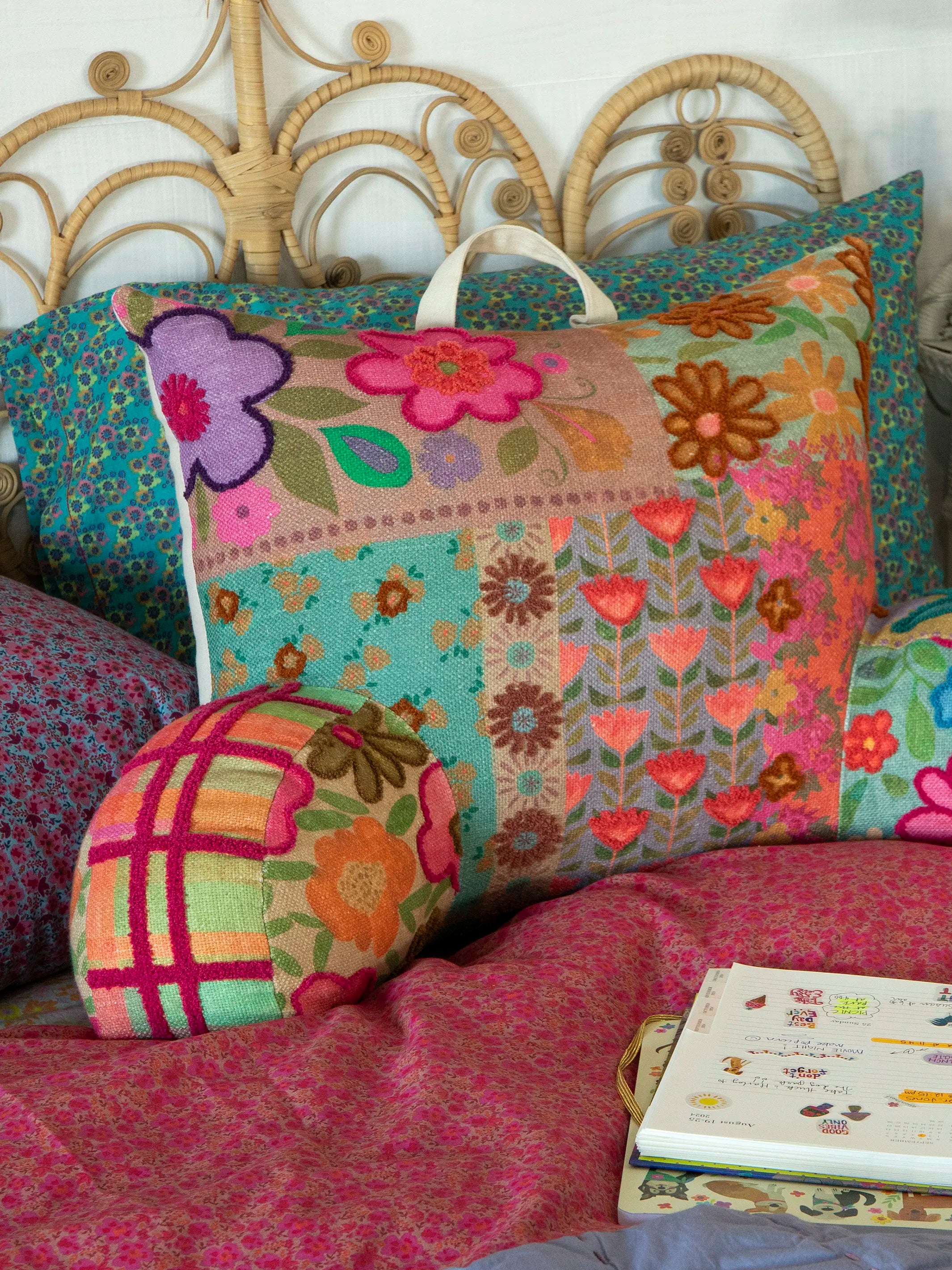 Tufted Backrest Pillow - Floral Patchwork
