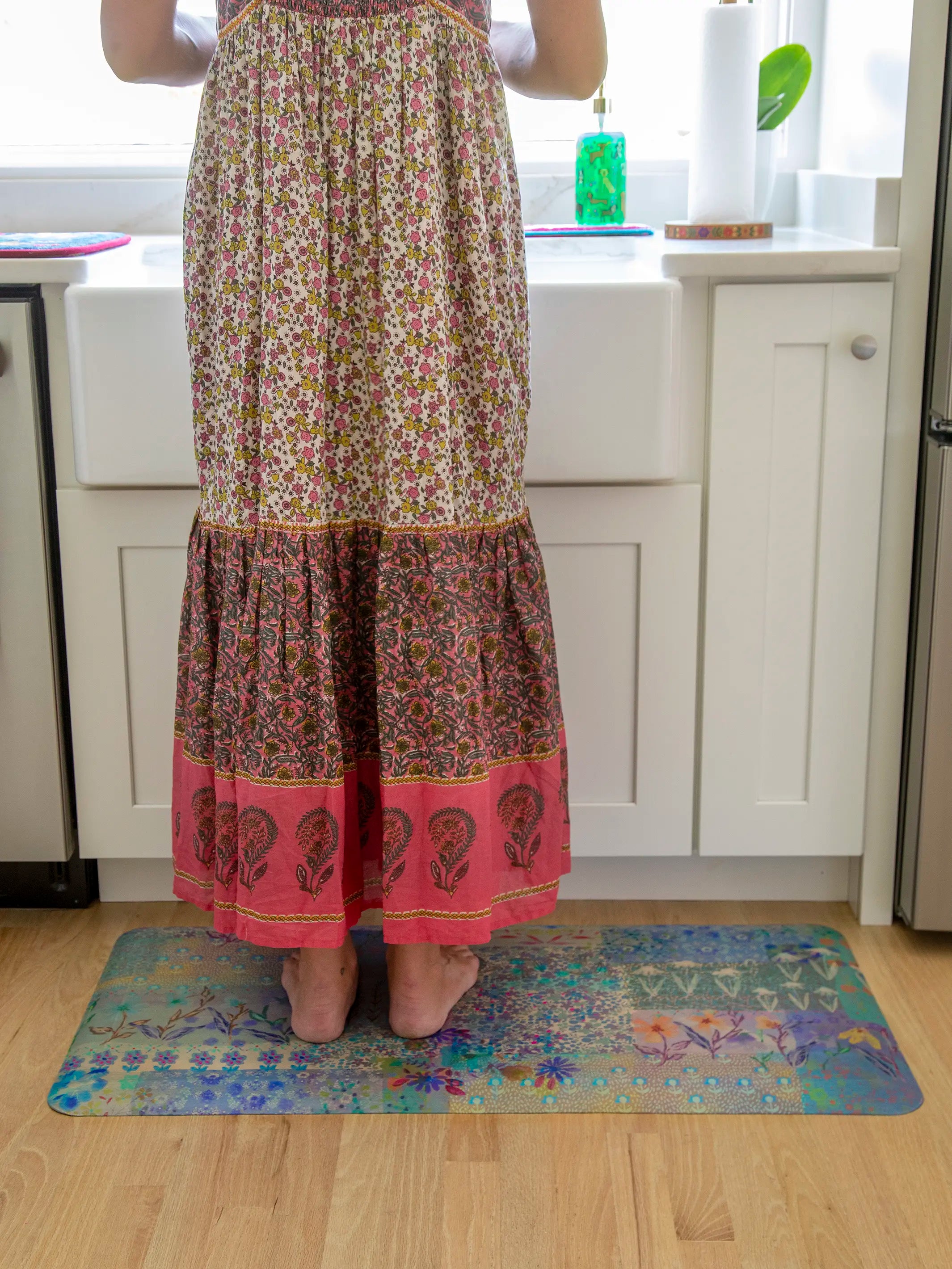 Comfy Kitchen Standing Mat - Blue Watercolor Patchwork