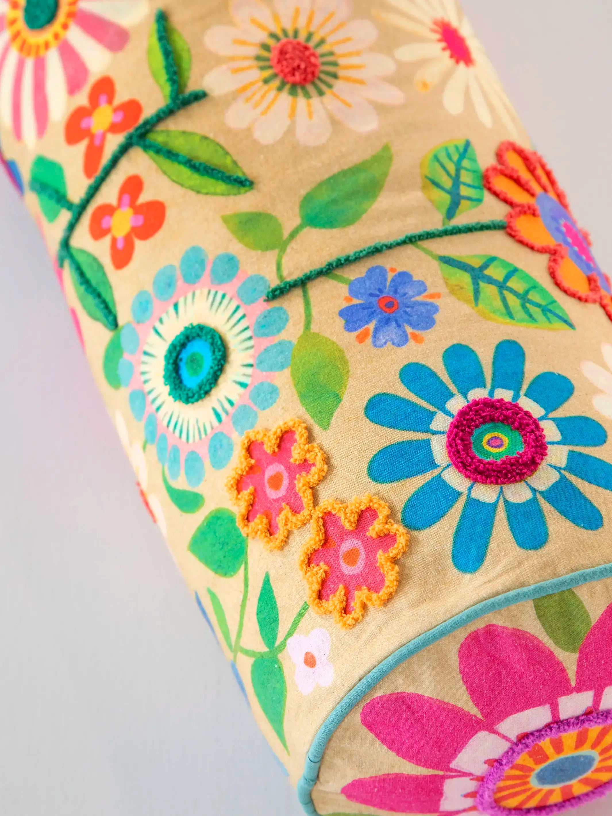 Tufted Bolster Pillow - Folk Flower