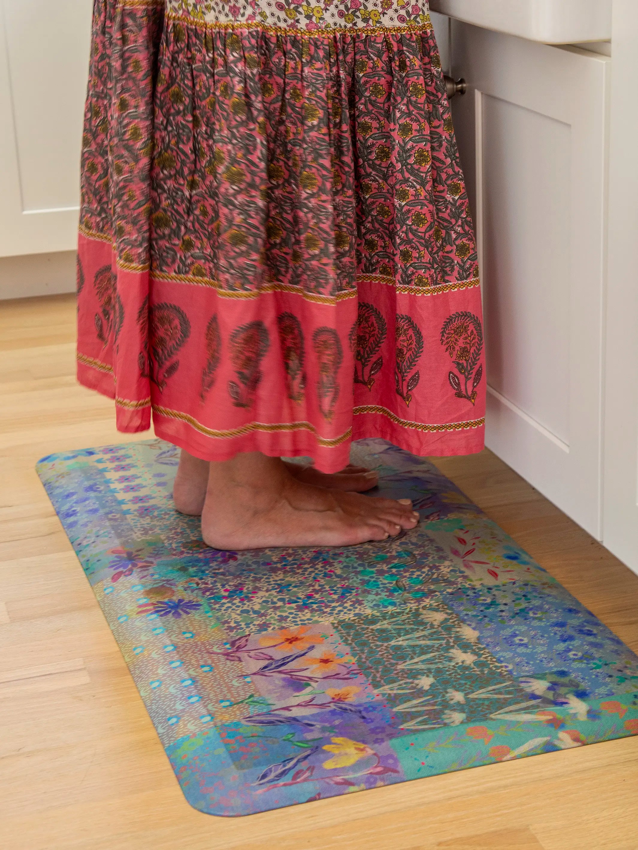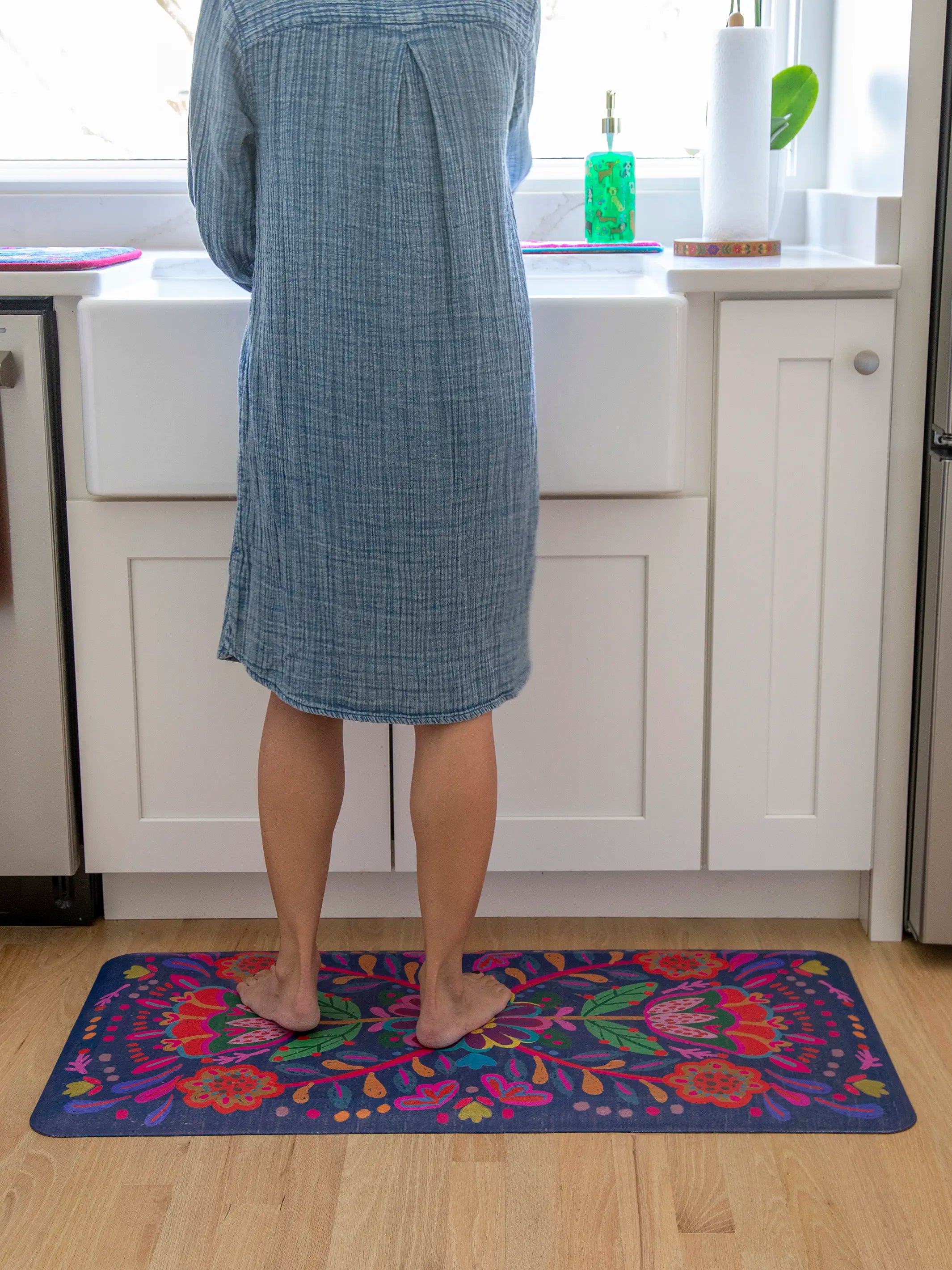 Comfy Kitchen Standing Mat - Navy Folk Flower
