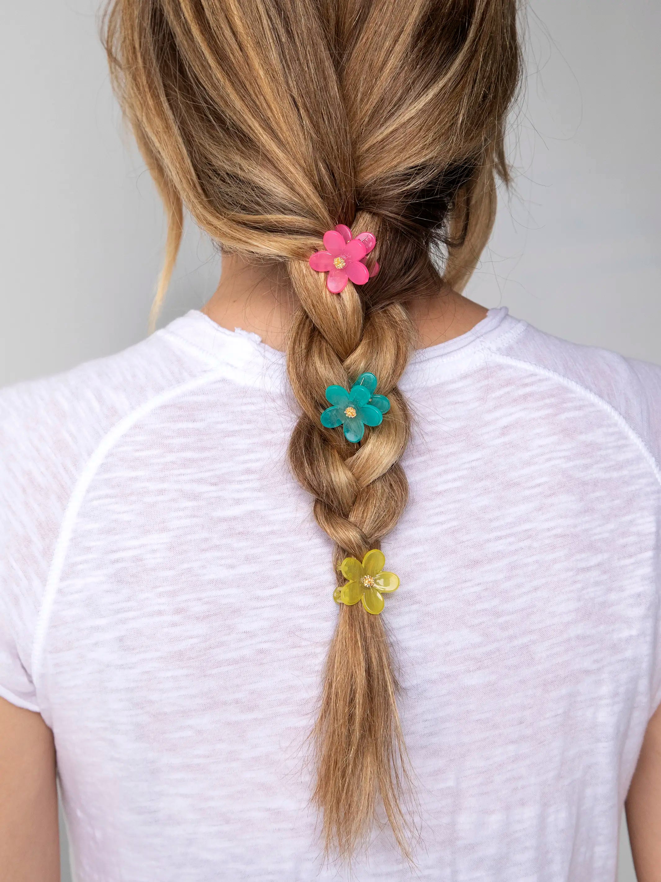 Mini Daisy Hair Claw Clips, Set of 3 - Multicolored