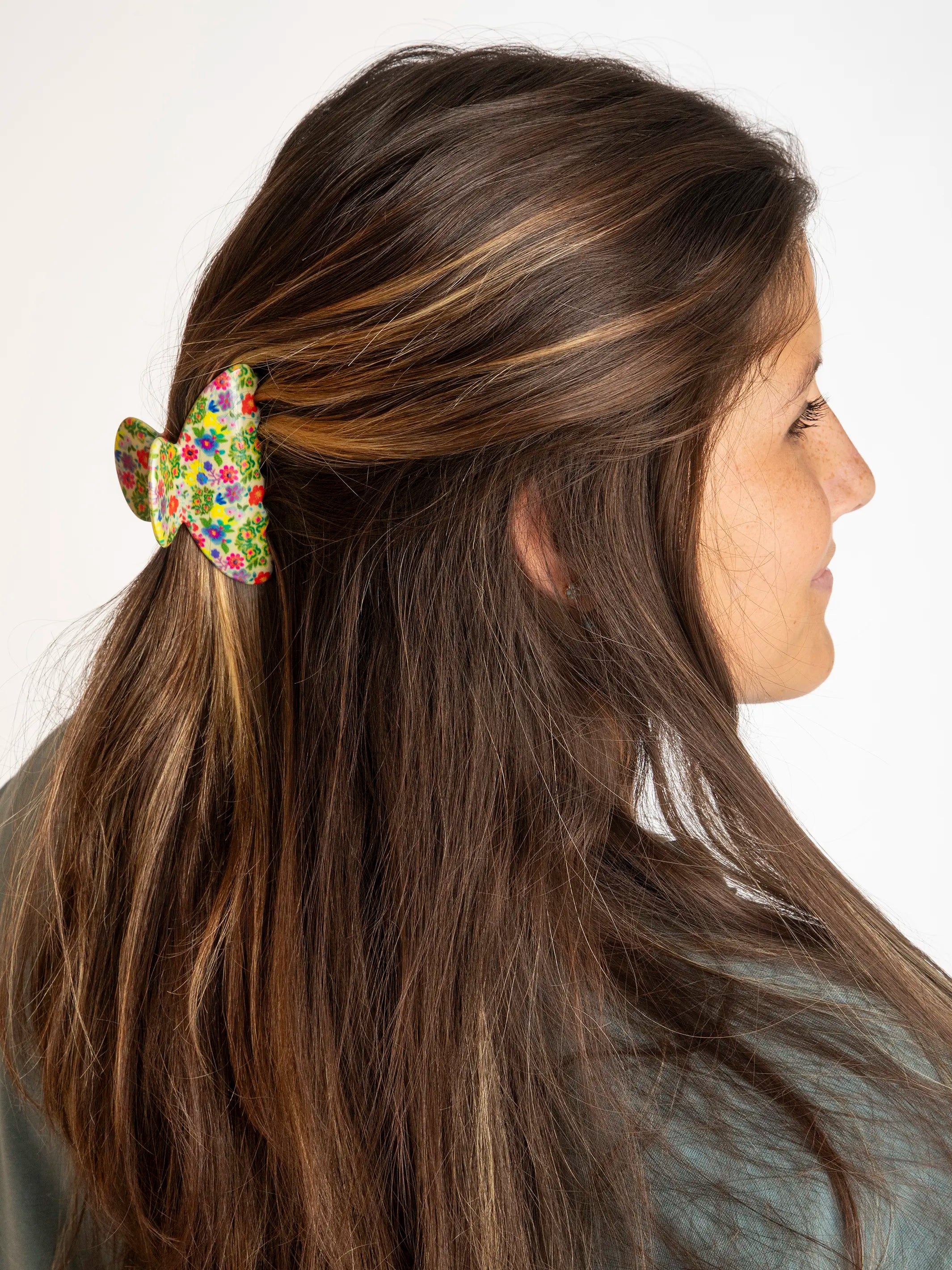 Floral Claw Clips, Set of 3 - Cream Mustard Coral Floral
