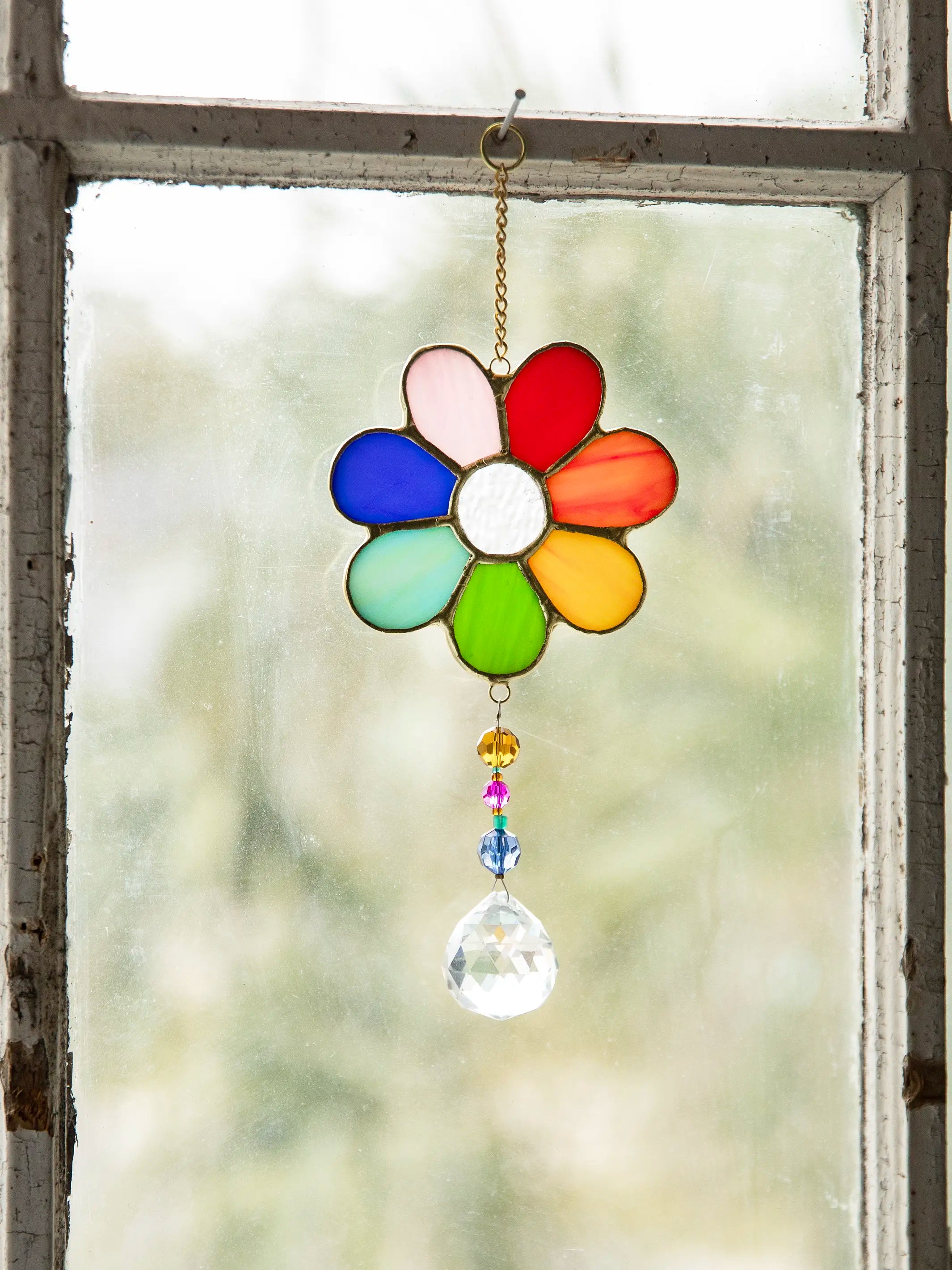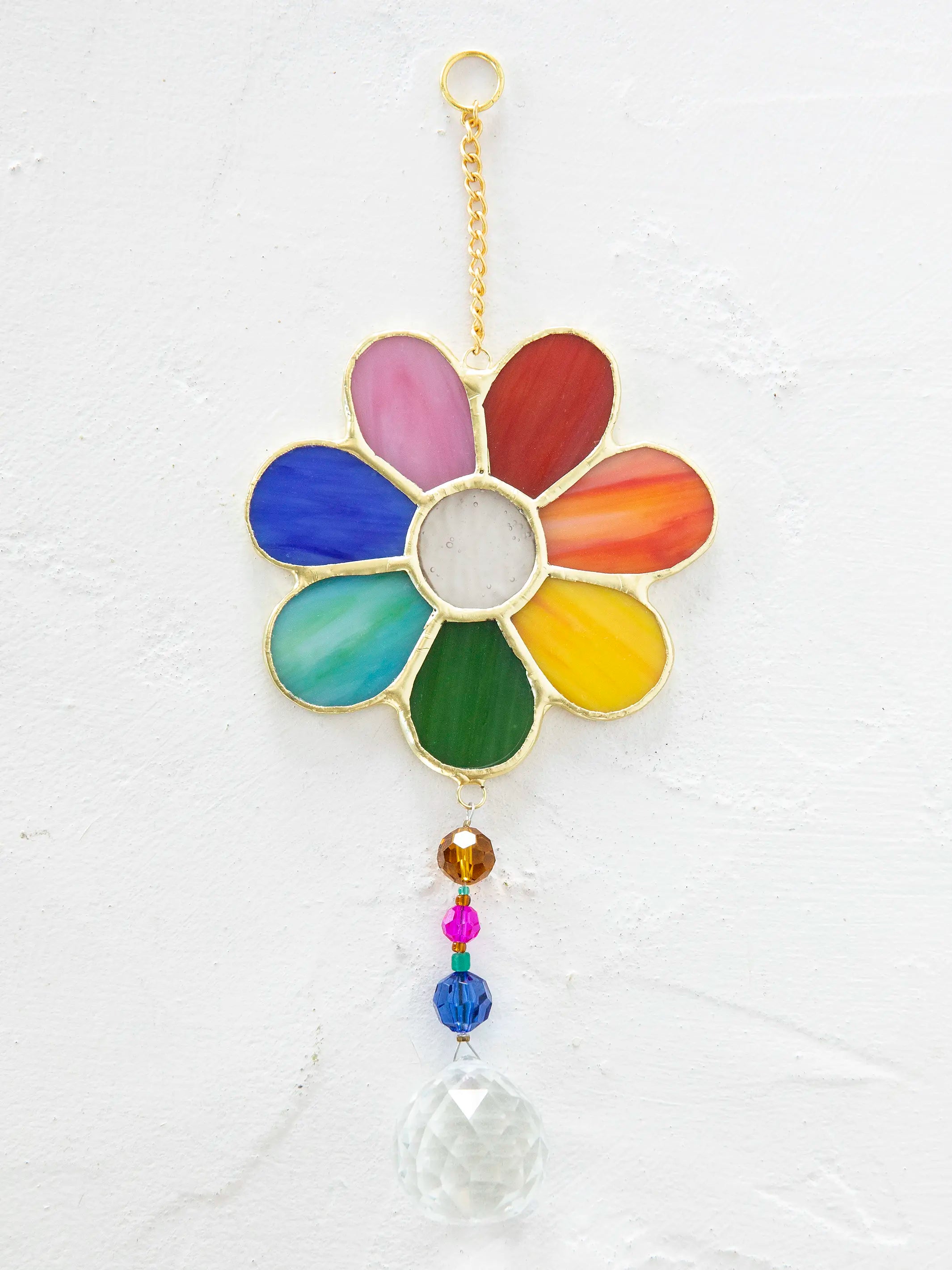 Stained Glass Window Hanging - Rainbow Daisy