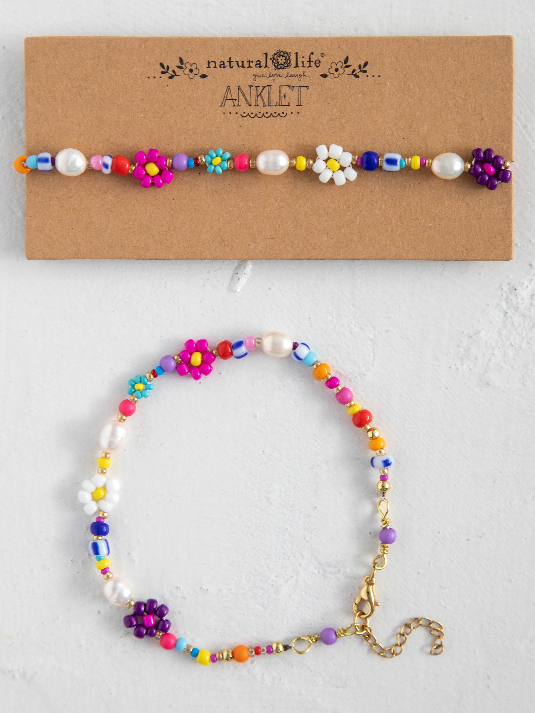 Boho Beaded Daisy & Pearl Anklet