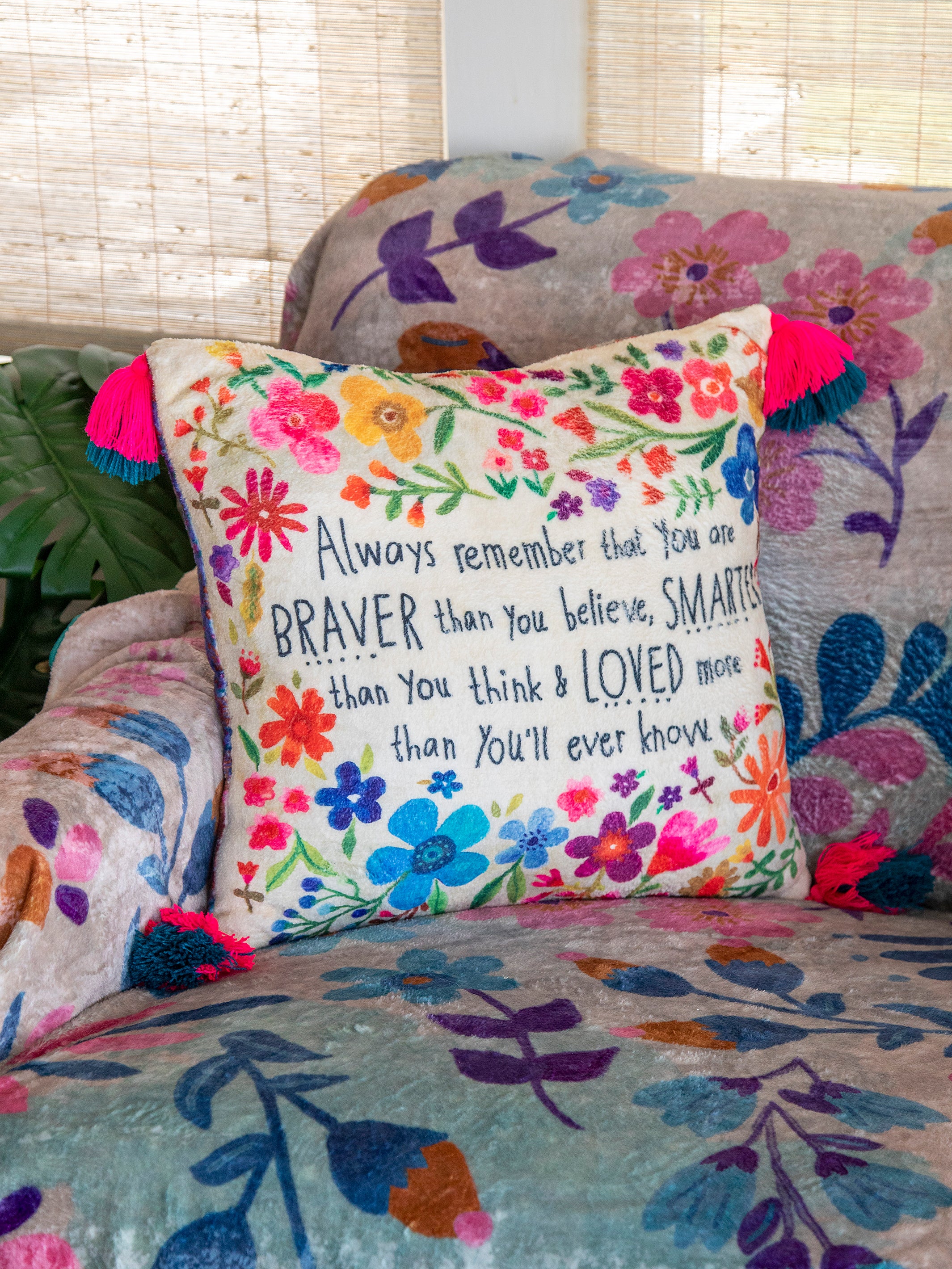 Double-Sided Cozy Throw Pillow - Always Remember You're Braver