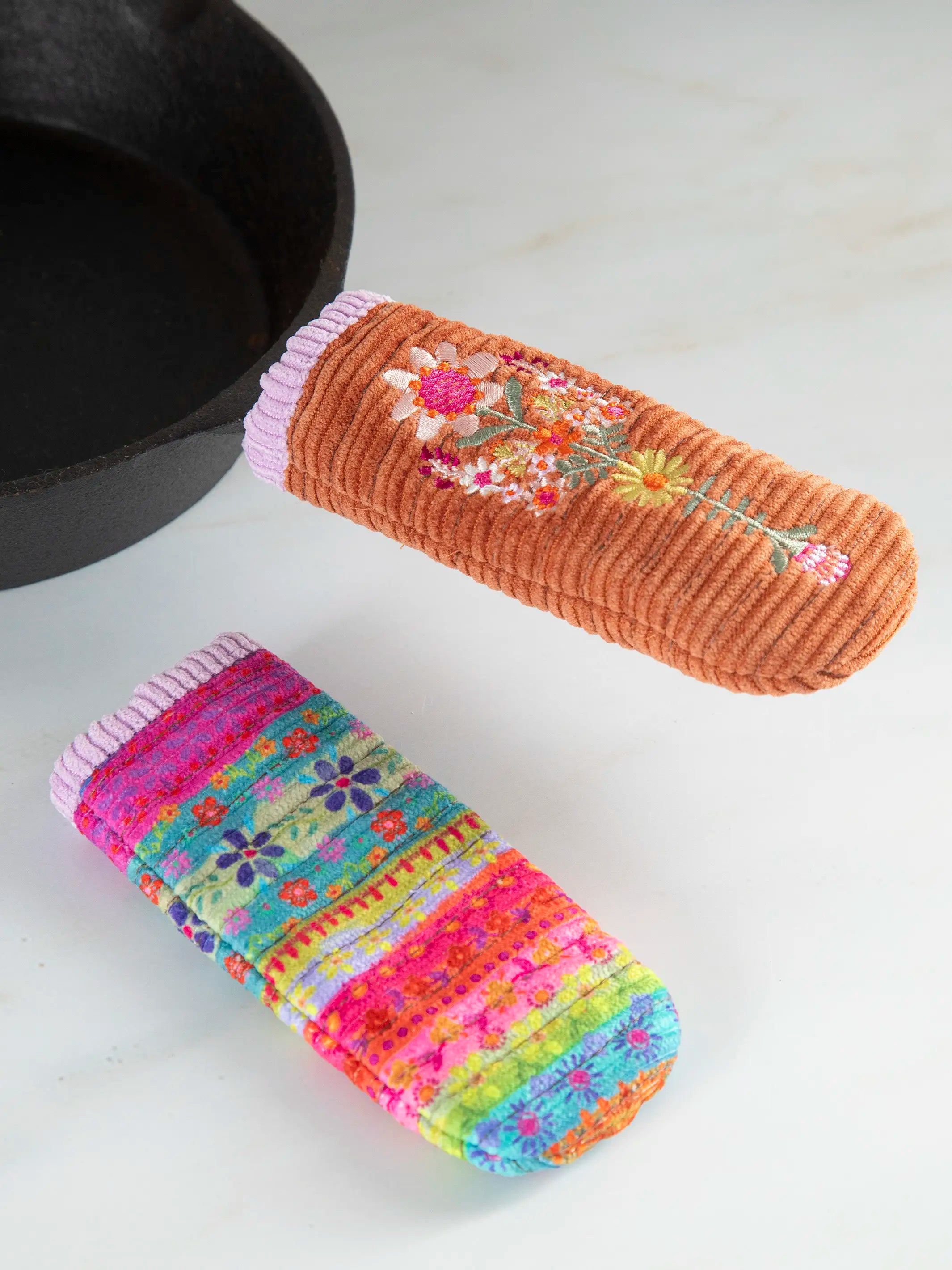 Skillet Handle Holders, Set of 2 - Rust Folk Flower