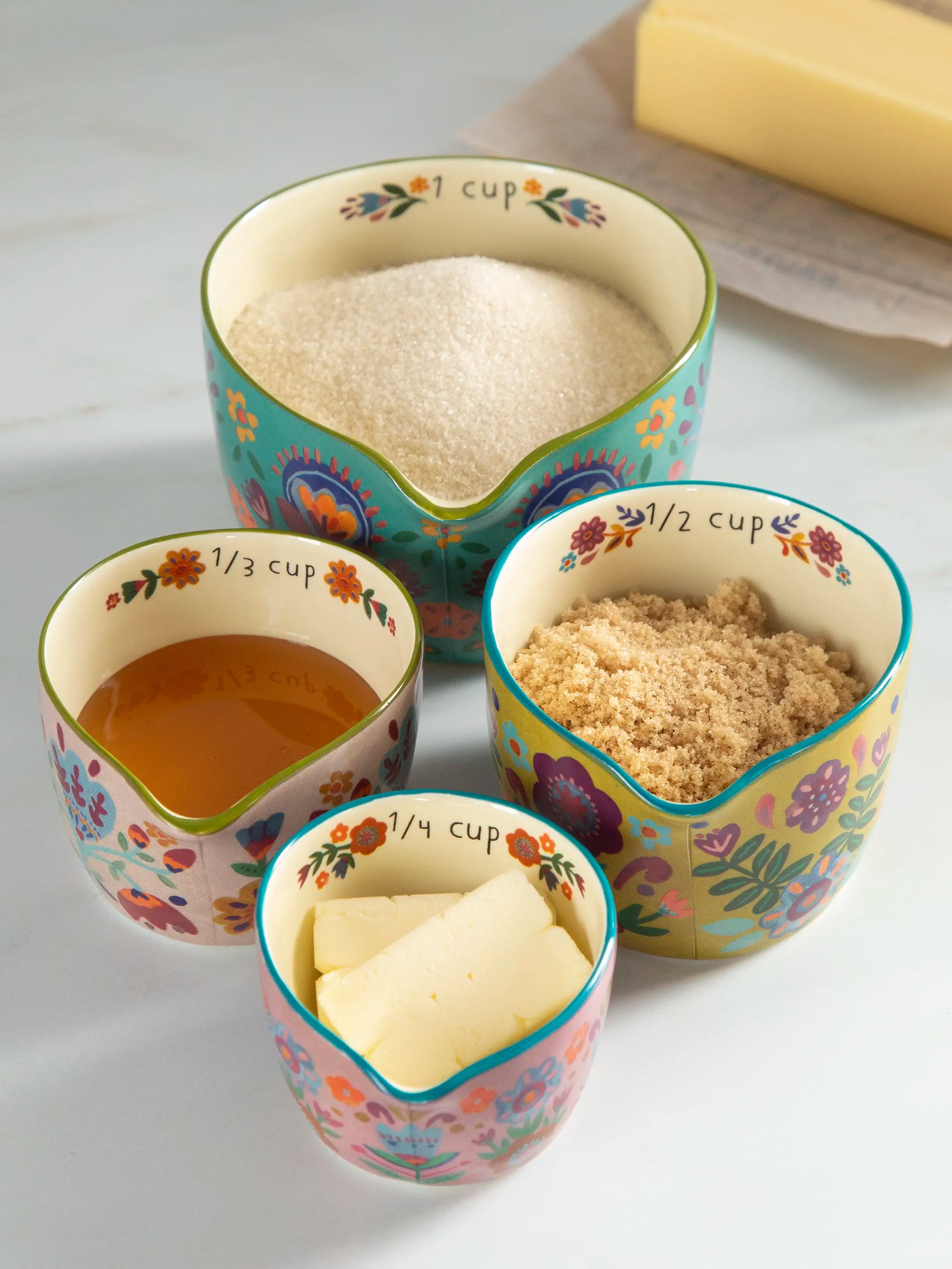 Ceramic Nesting Measuring Cups - Folk Flower