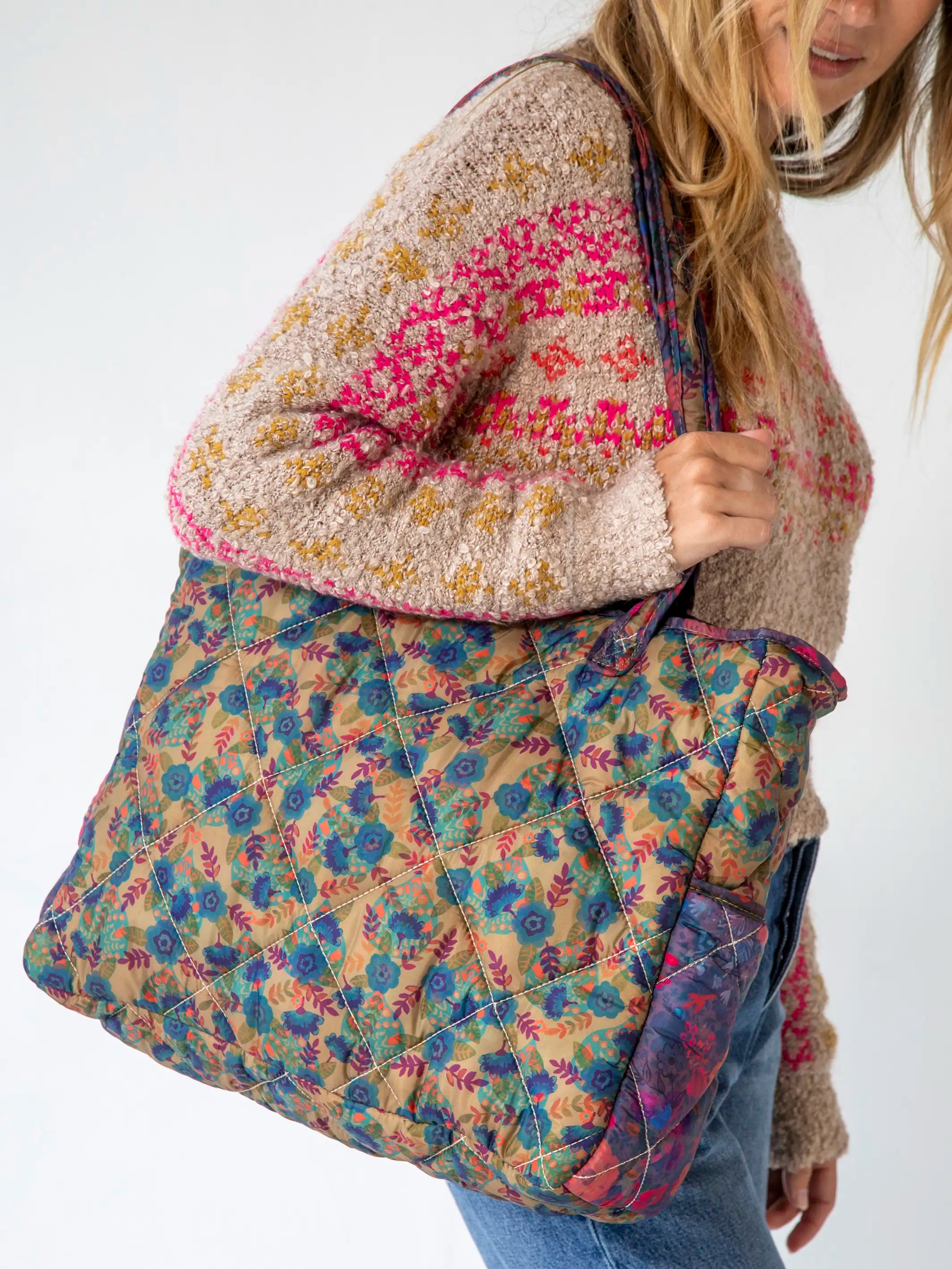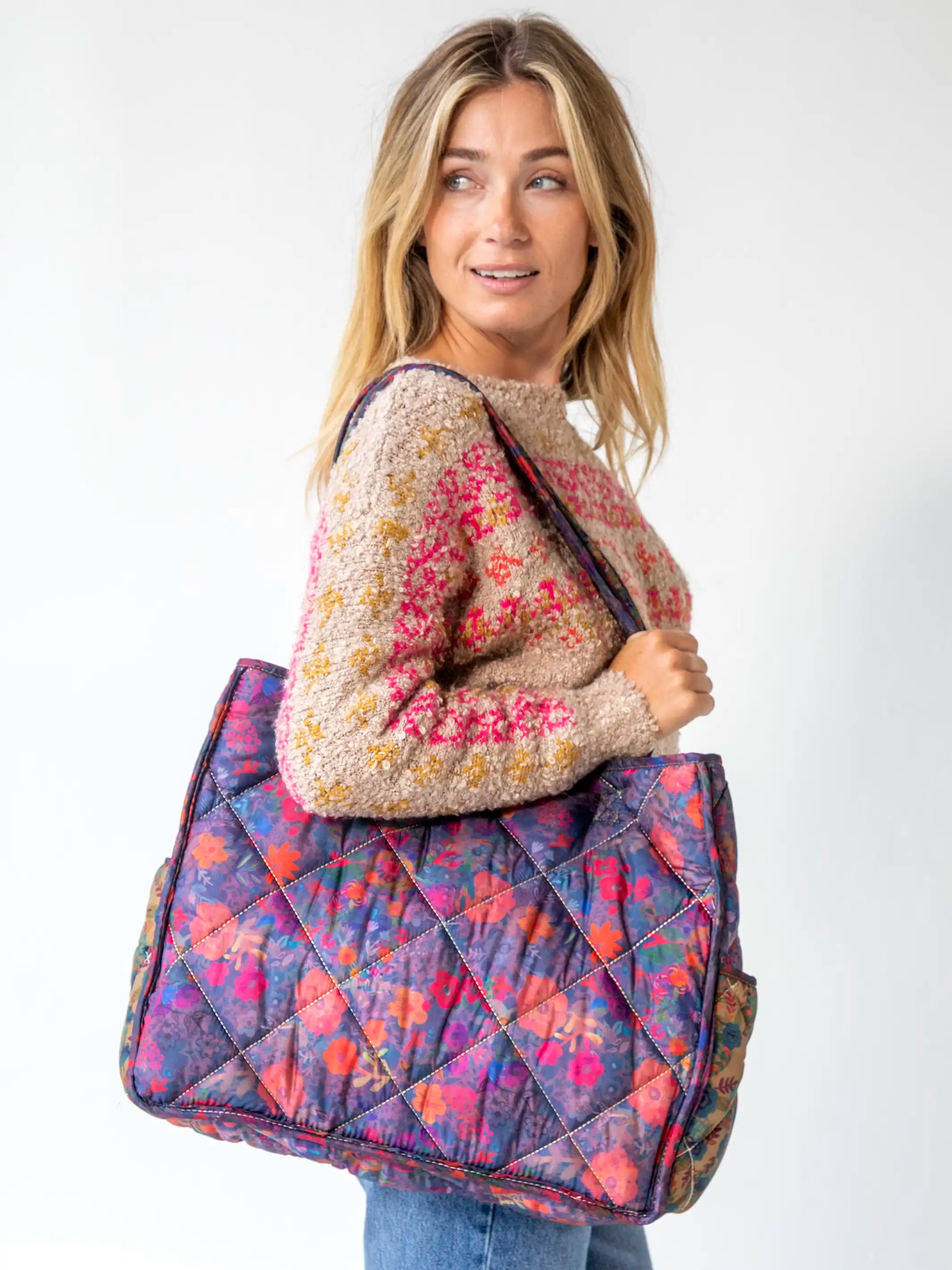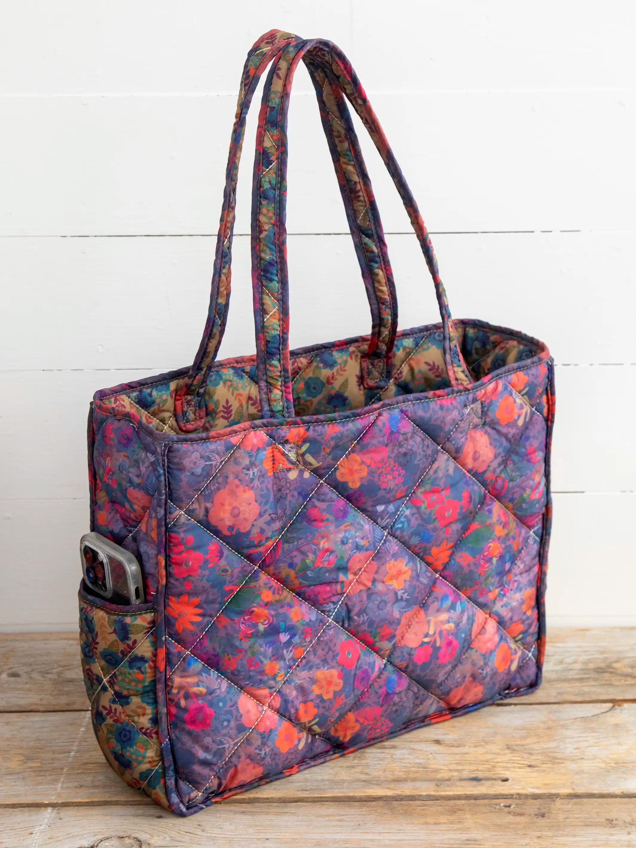 Reversible Puffy Tote Bag - Large Floral Garden
