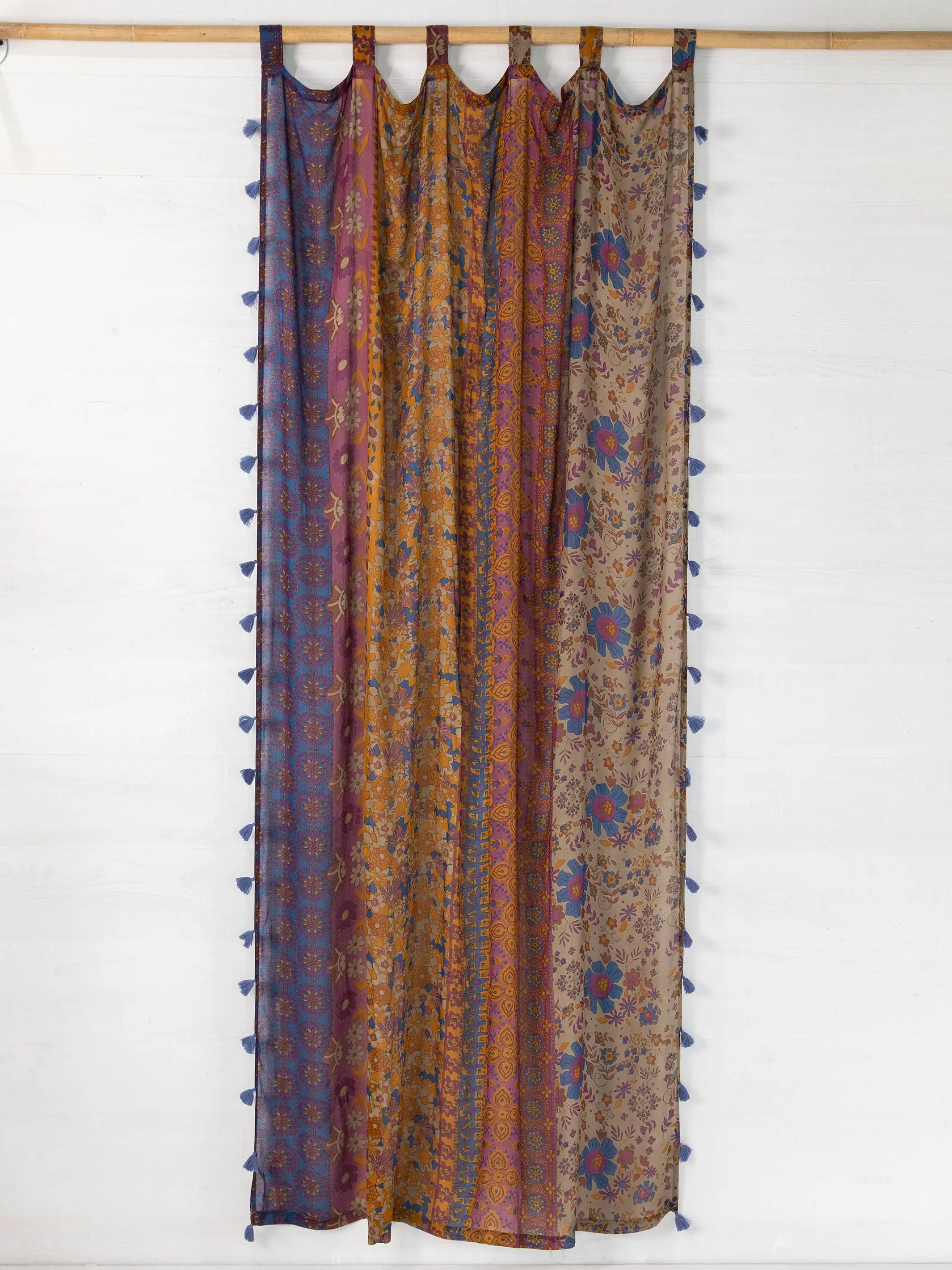 Printed Curtain Panel - Grey Periwinkle Border
