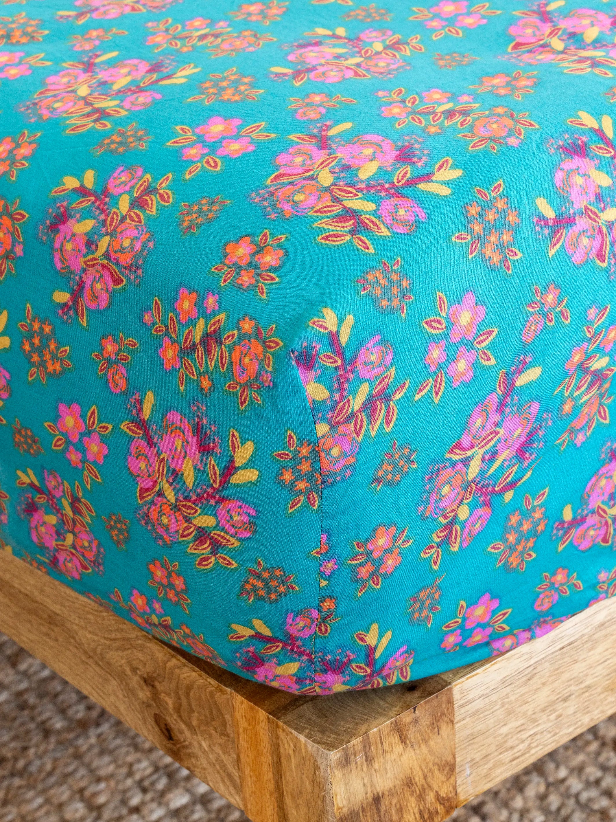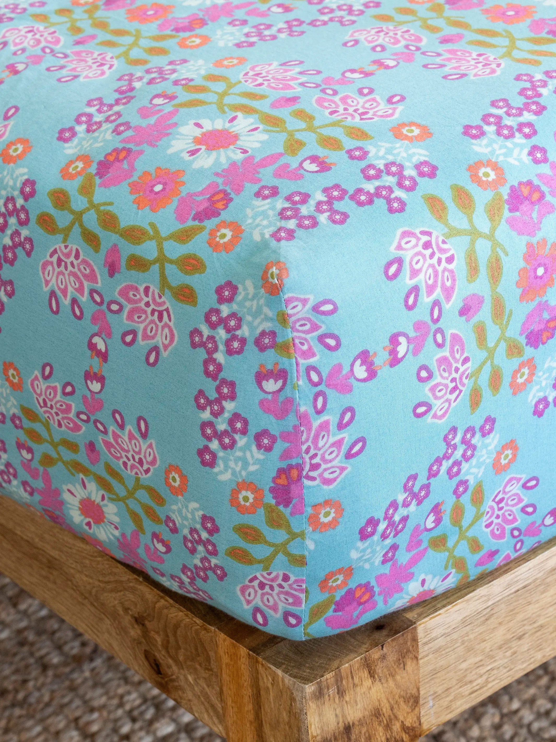 Mix & Match Cotton Fitted Sheet - Teal Bouquet Blooms