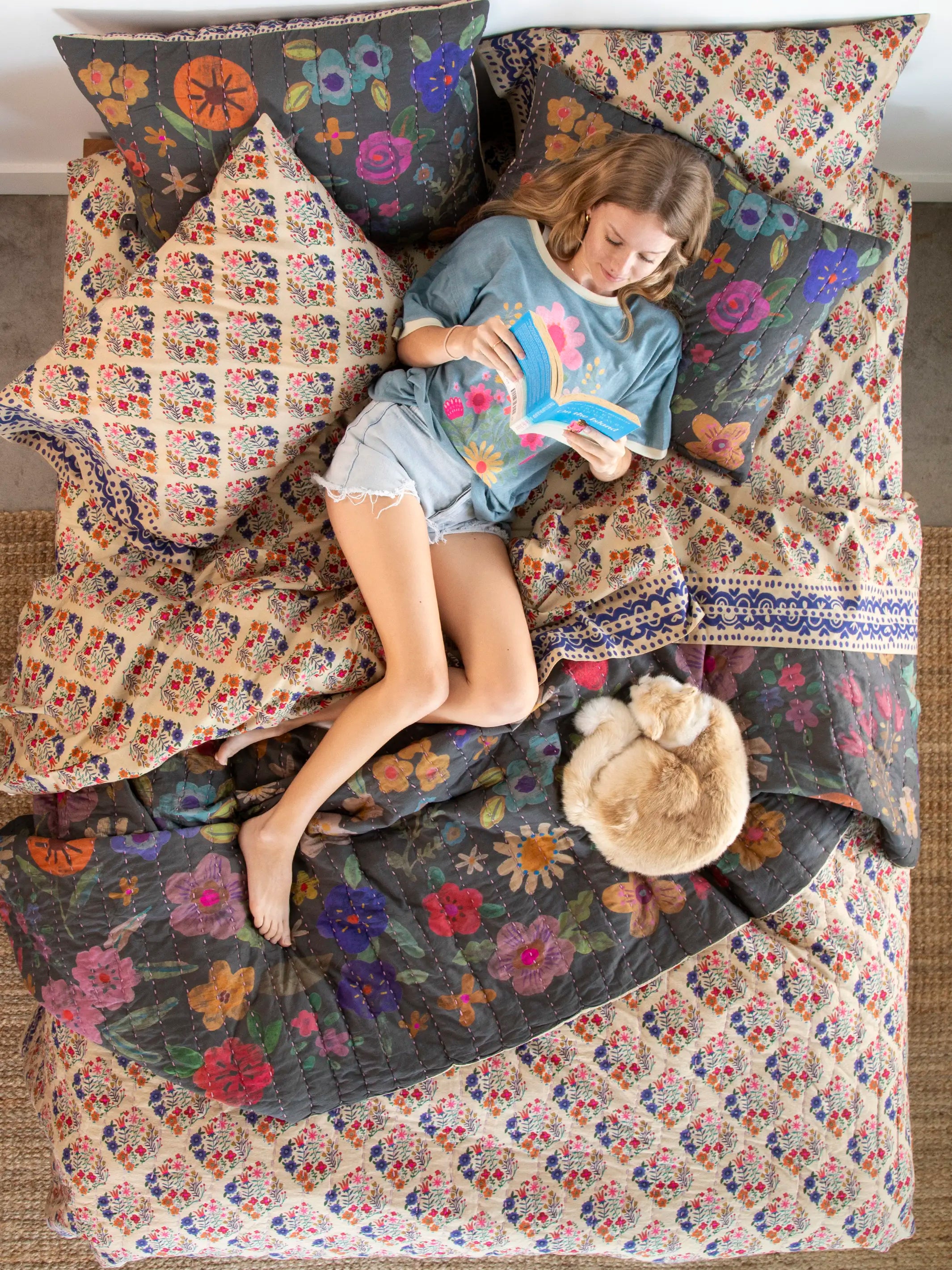 Bungalow Reversible Cotton Quilt - Wildflower Pop