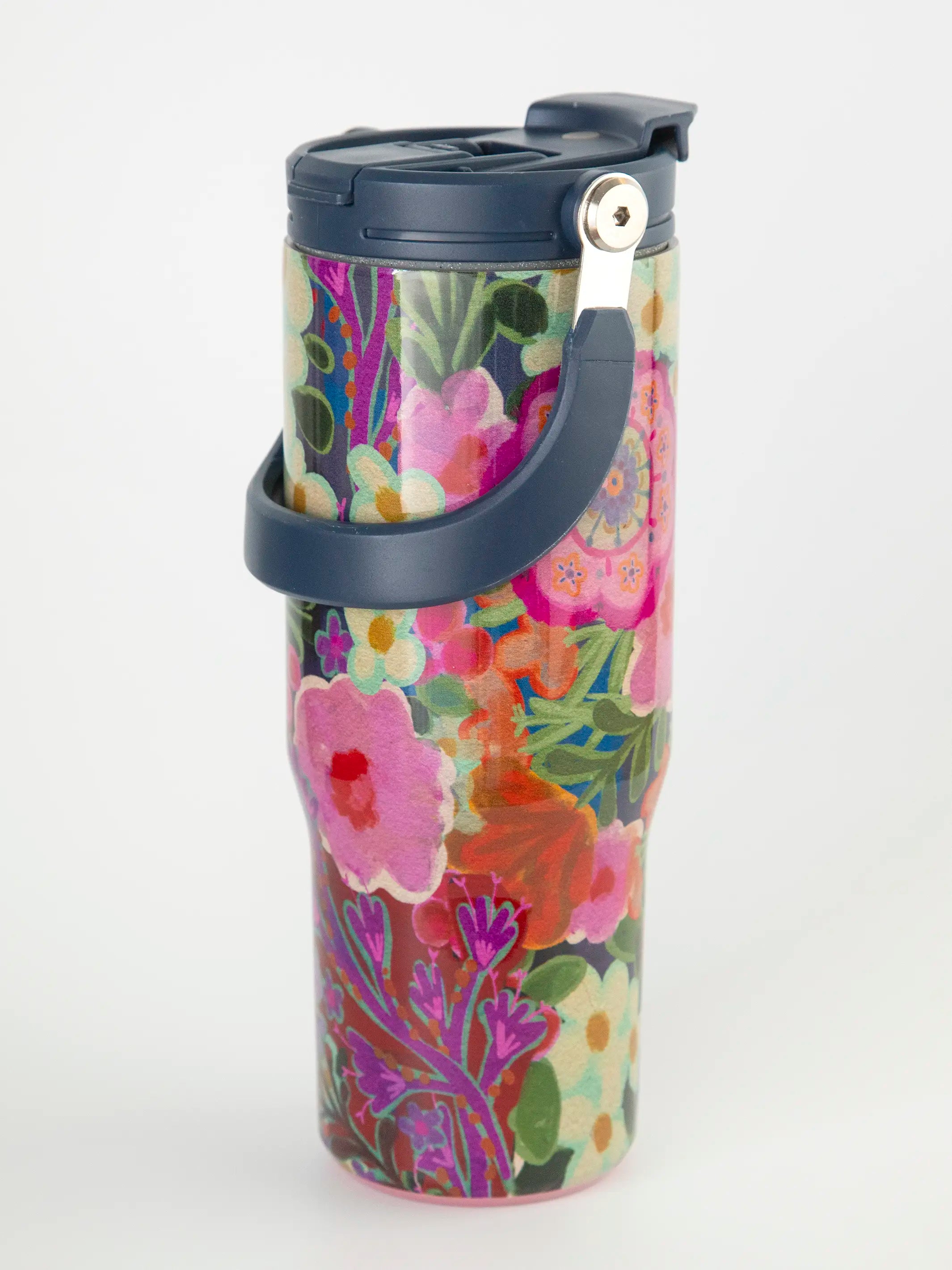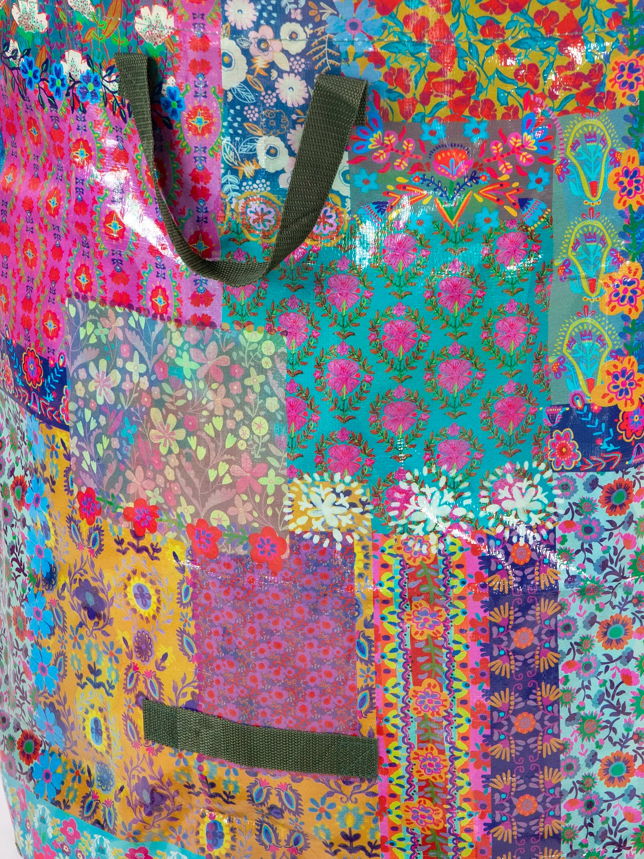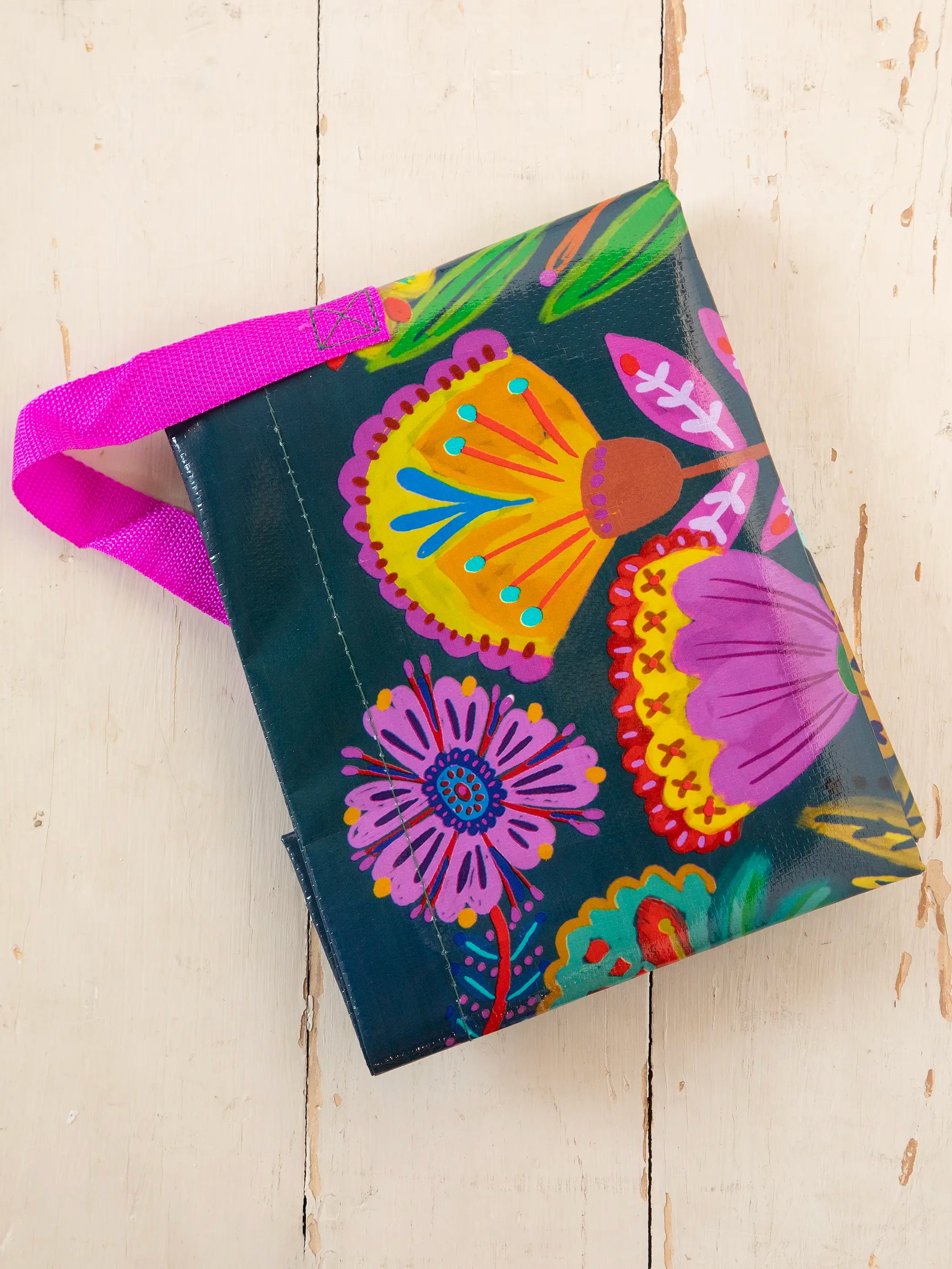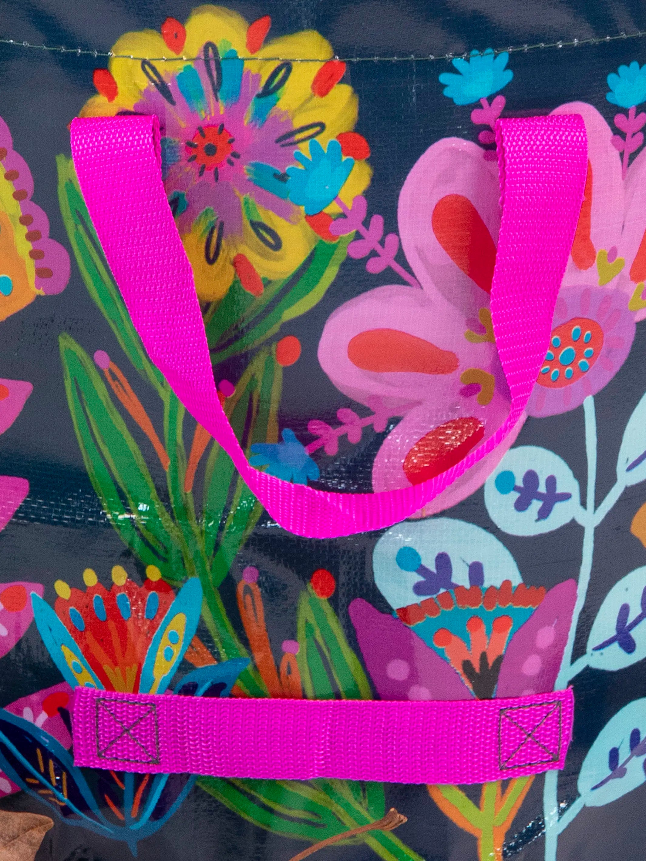 Happy XL Zip Tote Bag - Indigo Folk Flower