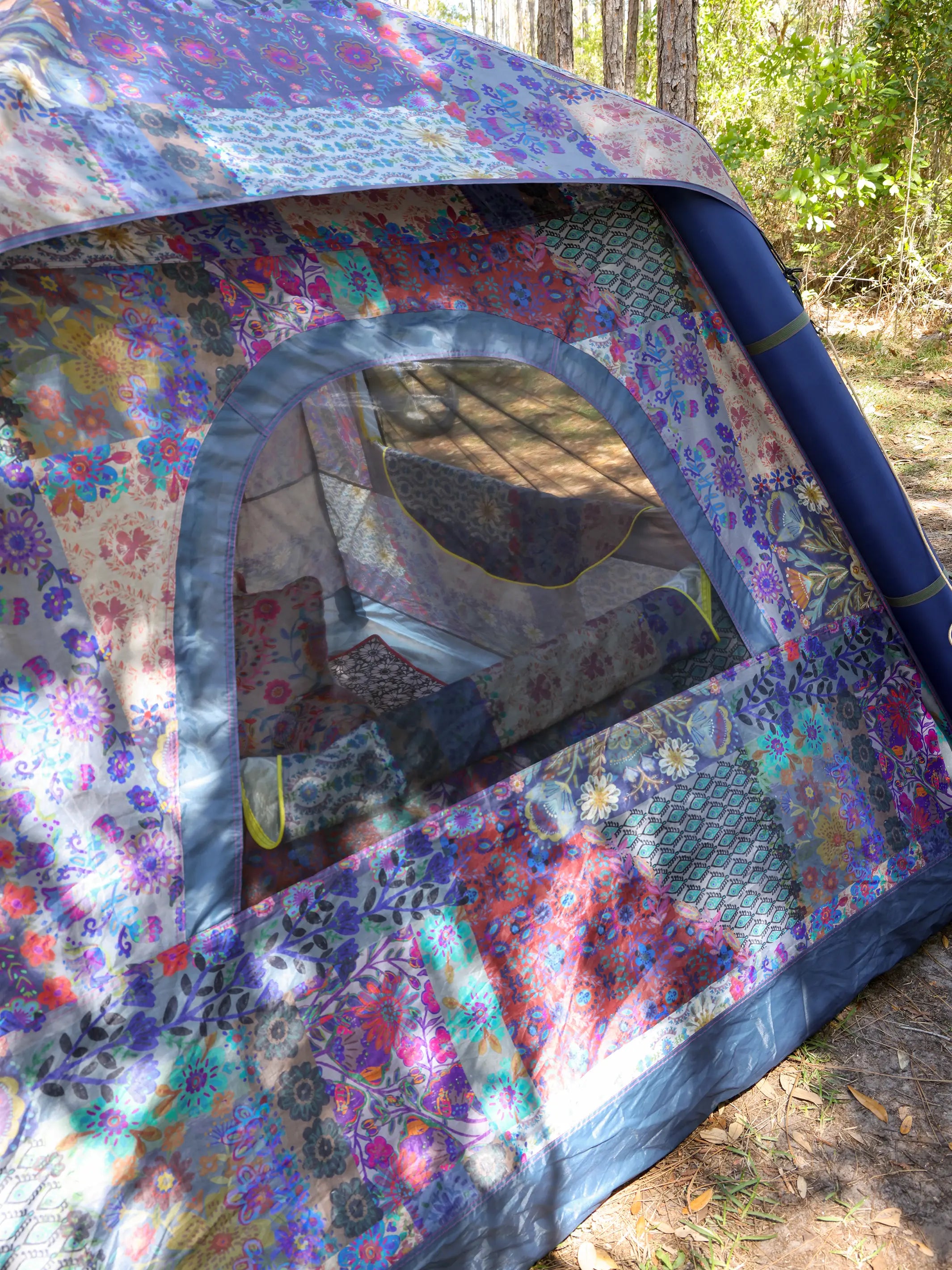 Happy Camper Inflatable Camping Tent - Blue Patchwork