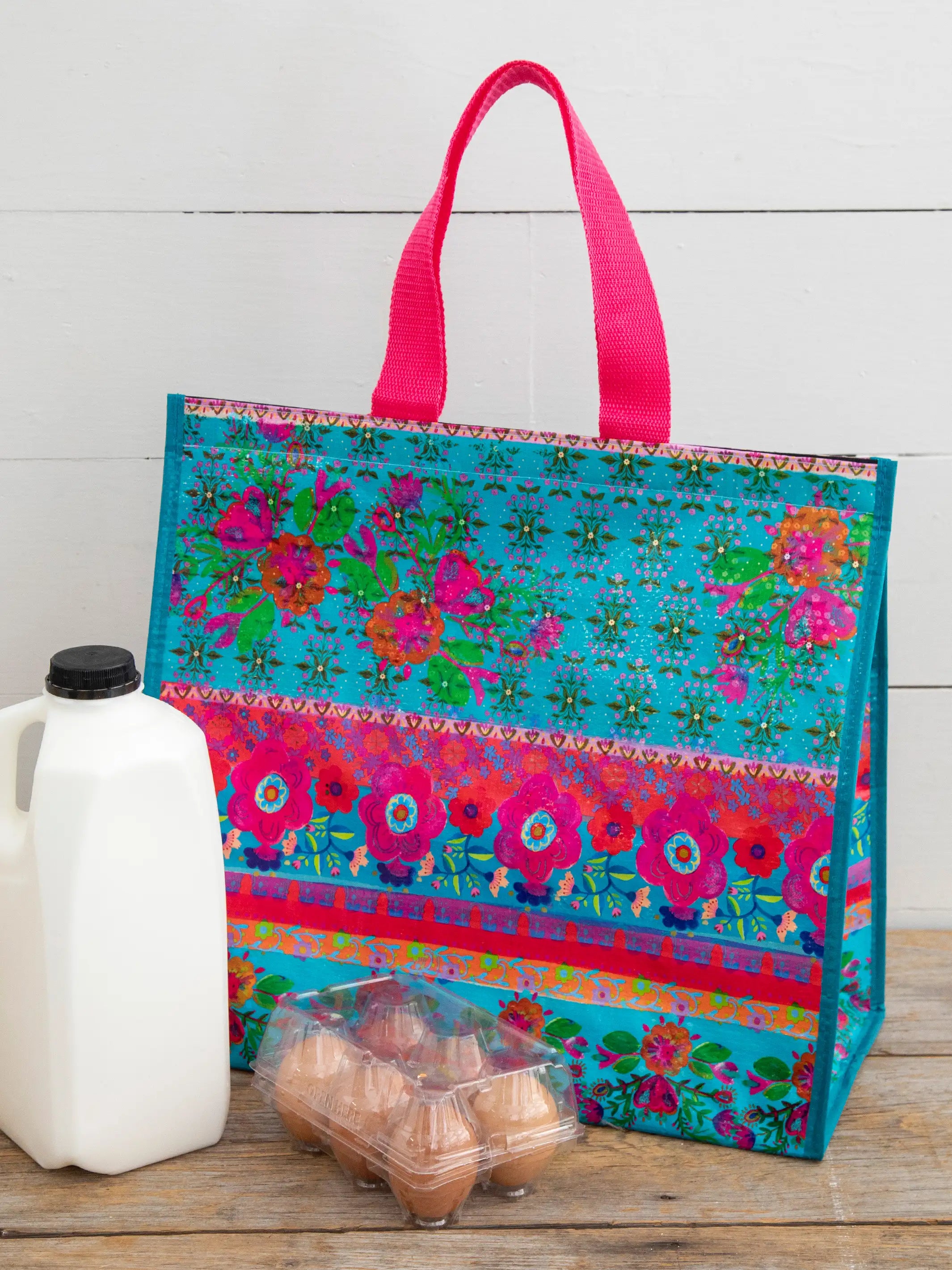 Set of 2 Heavy Duty Reusable Grocery & More Box Bags - Bright Floral Garden