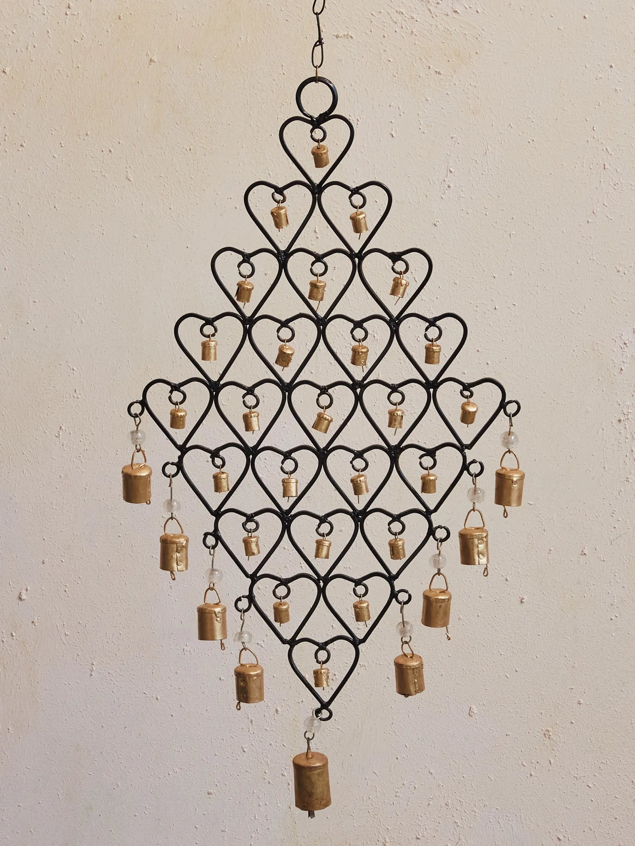 Metal Hearts and Bells Porch Hanger