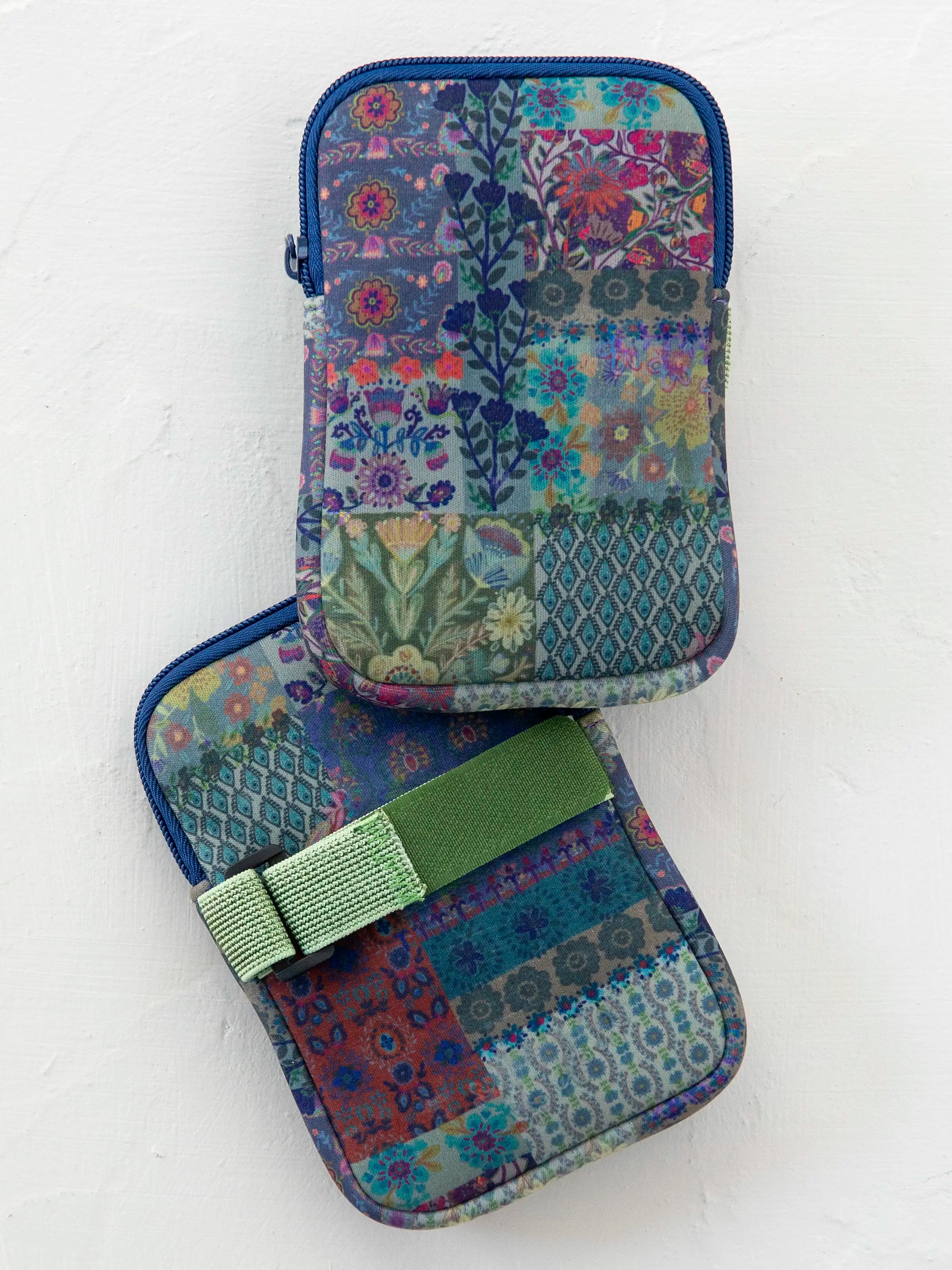Water Bottle Zipper Pouch - Blue Patchwork