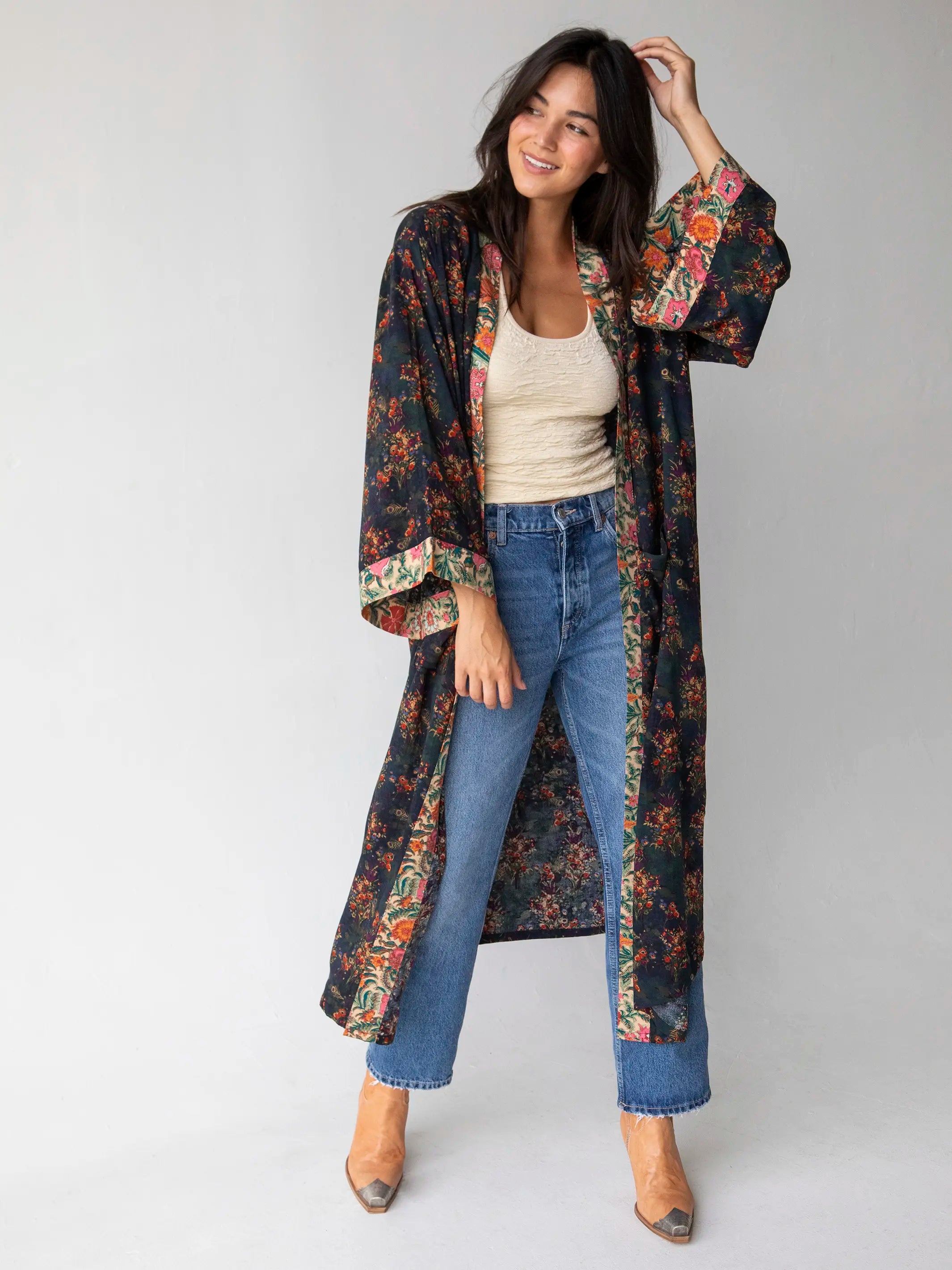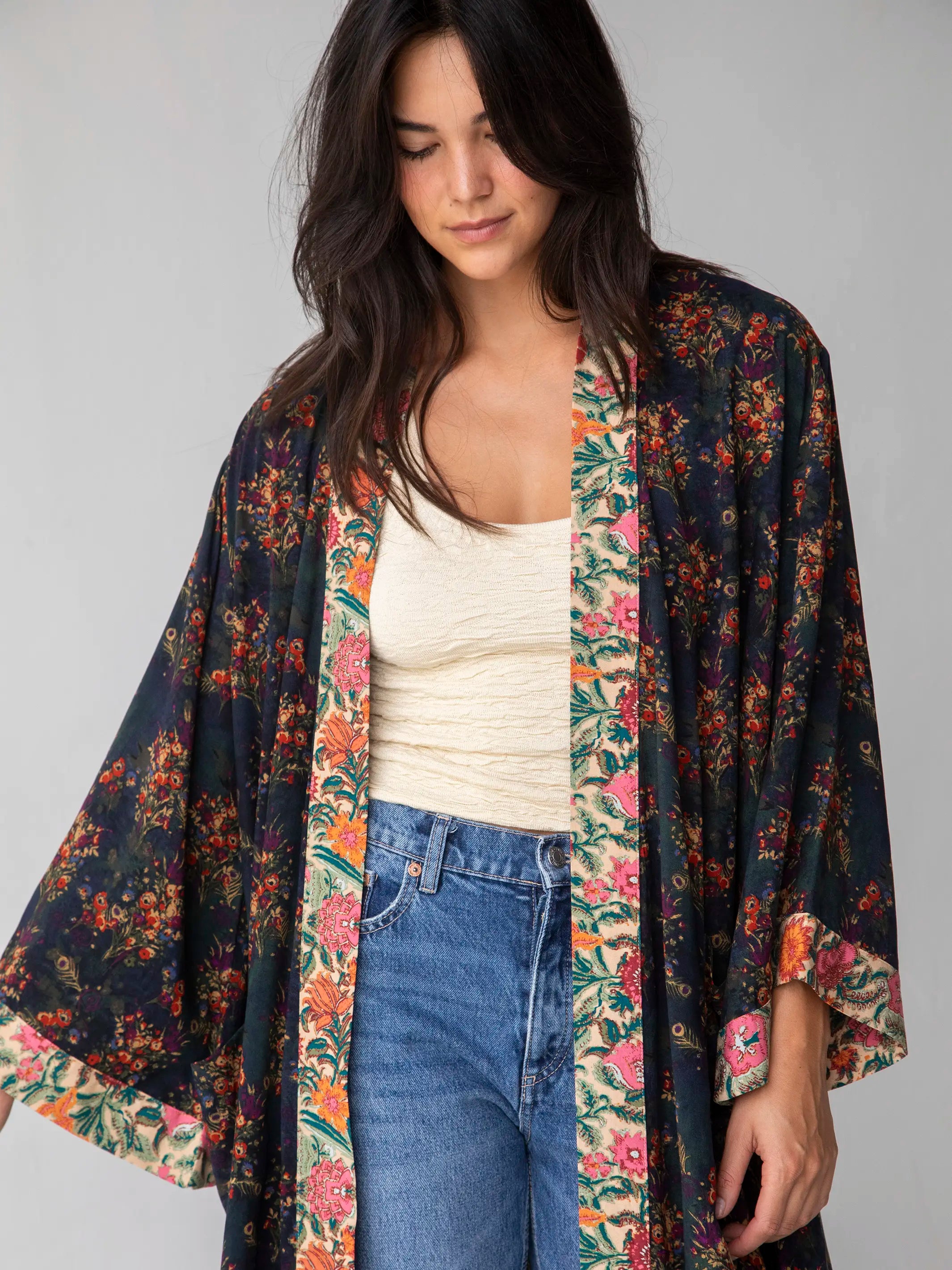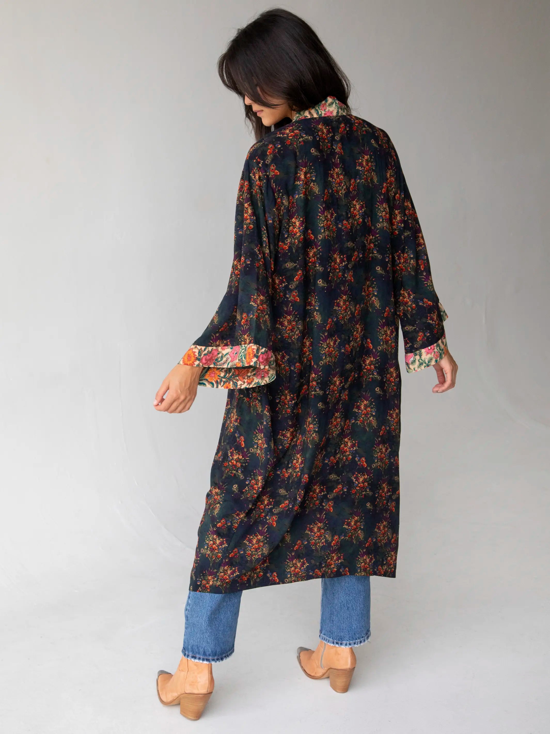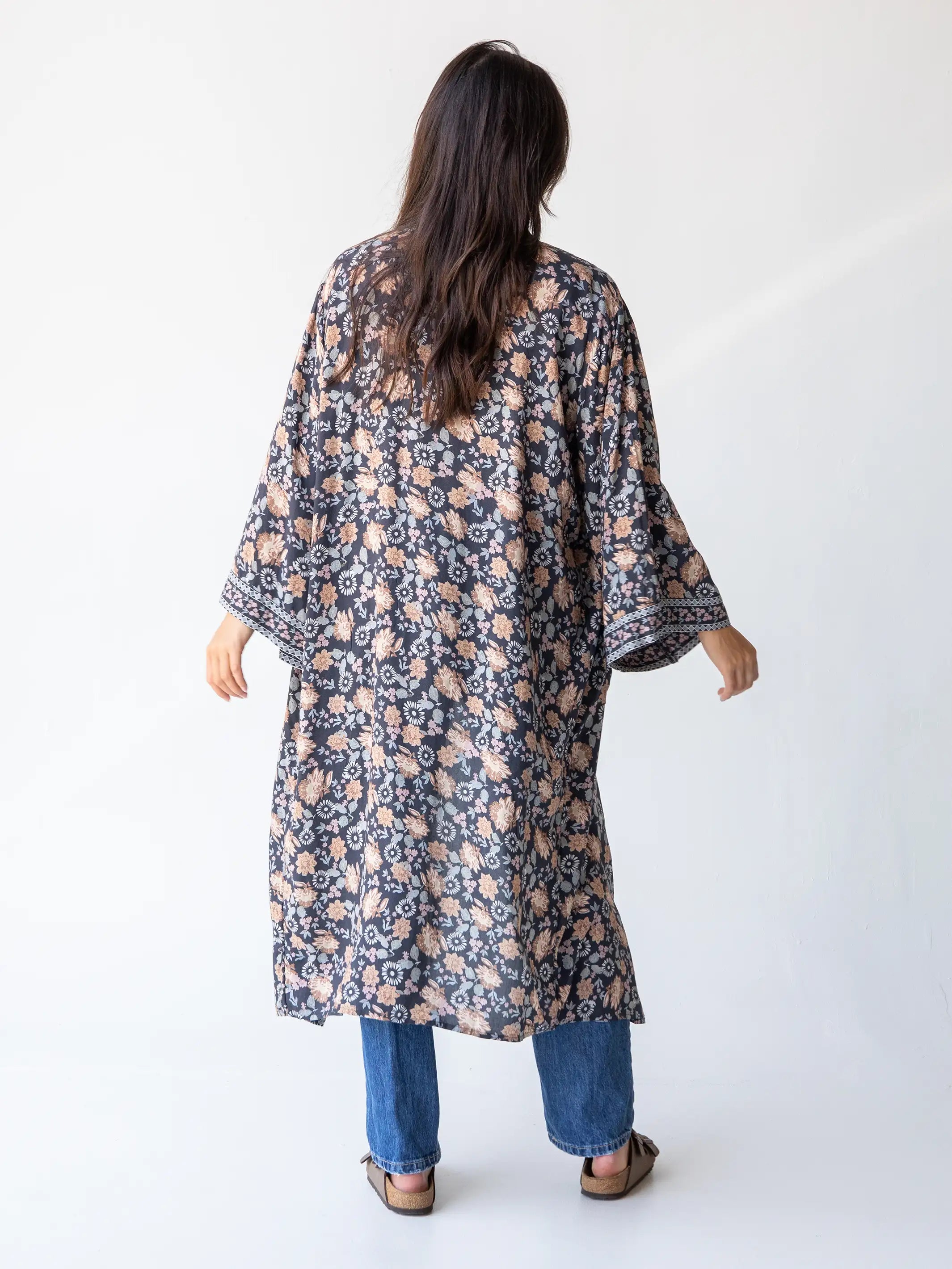 Camila Kimono - Indigo Tan Mixed Floral