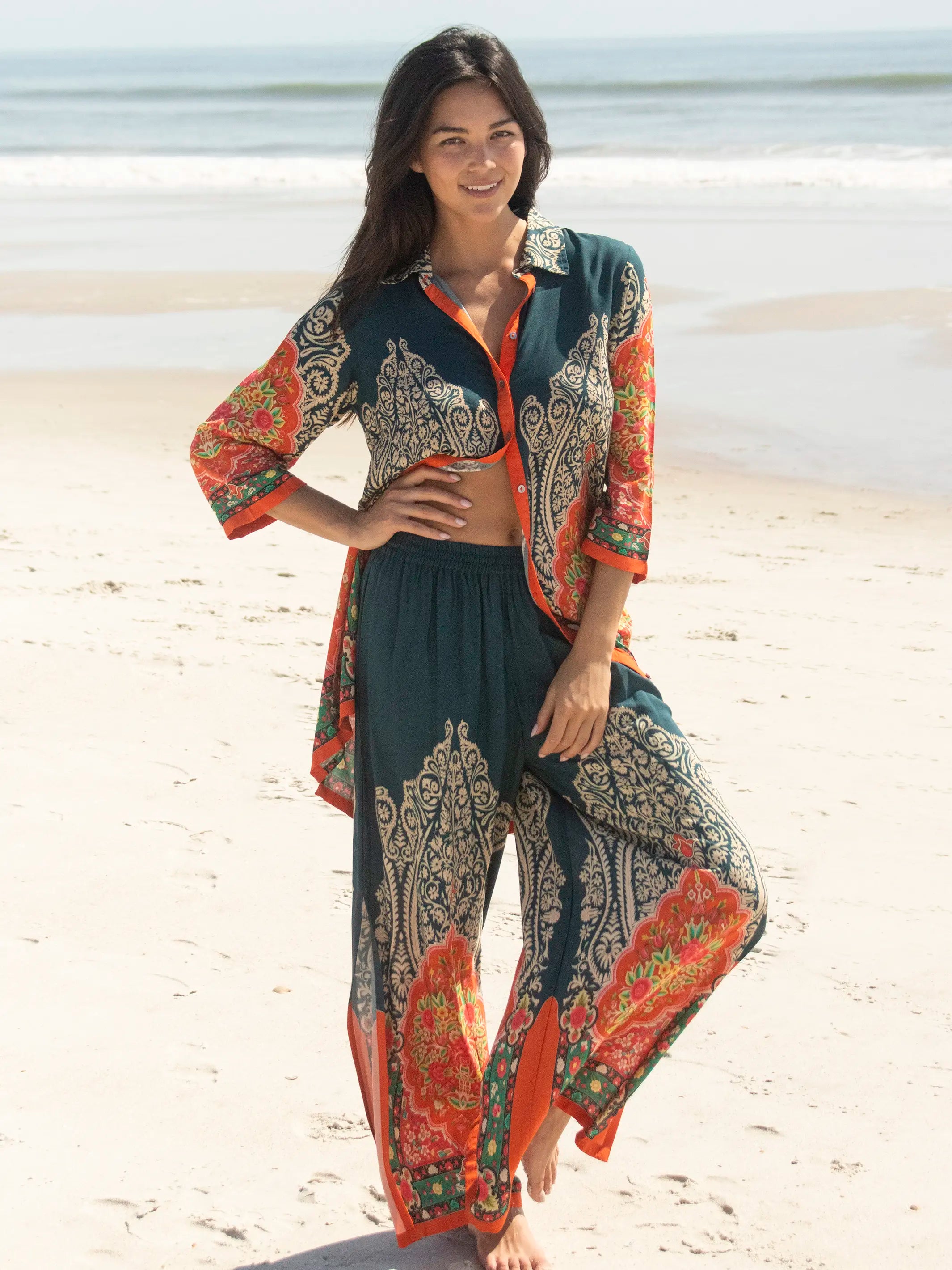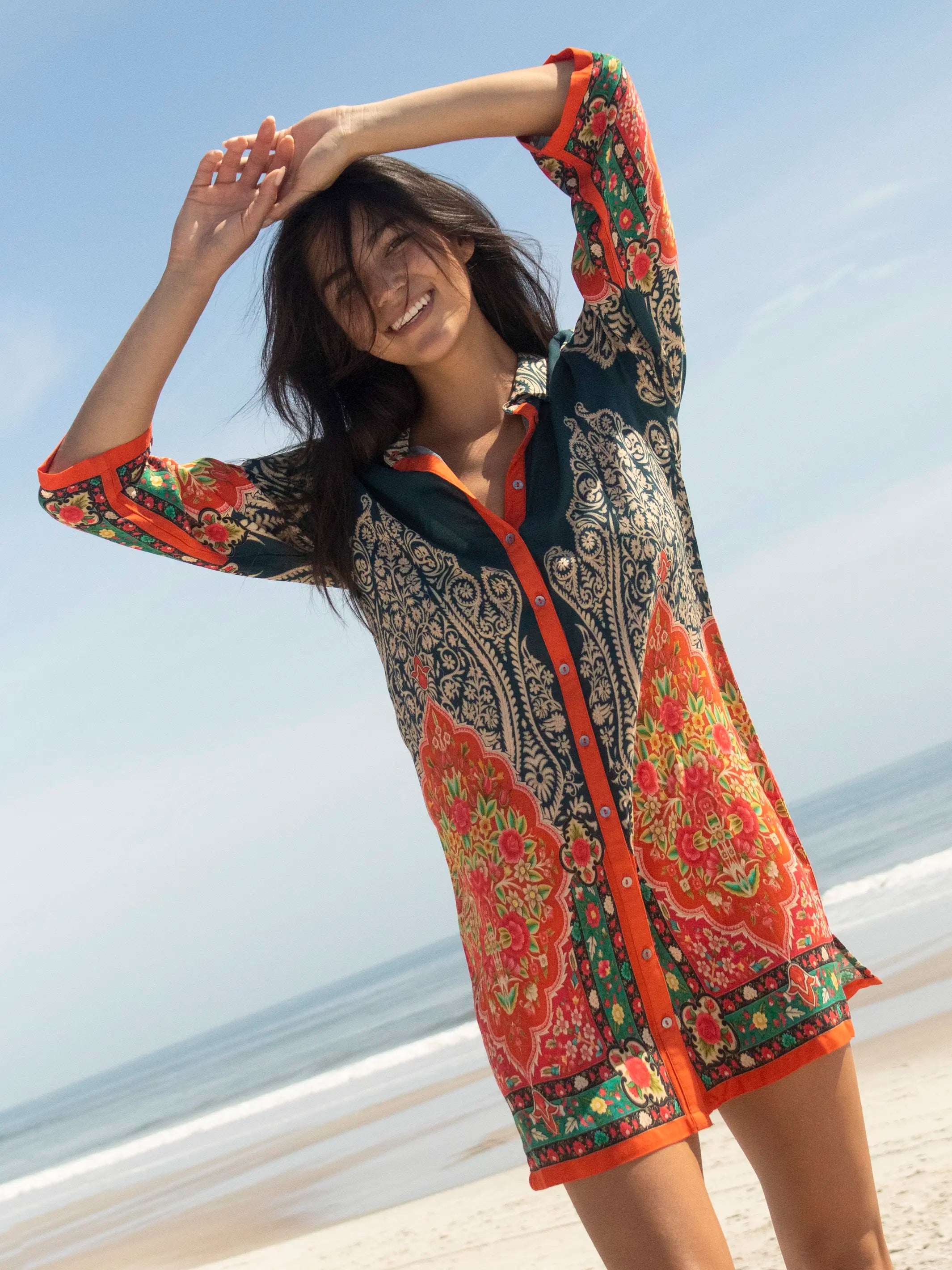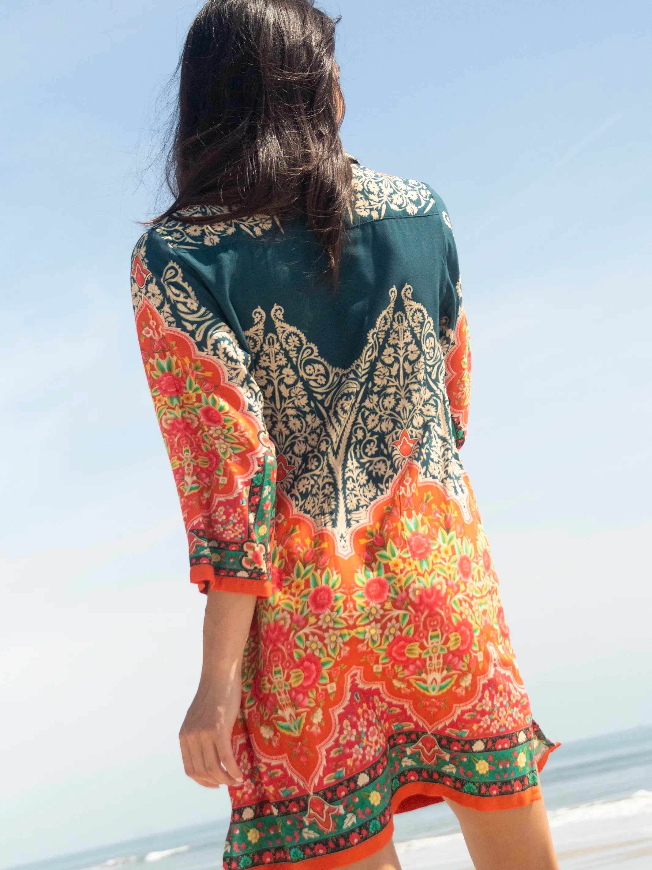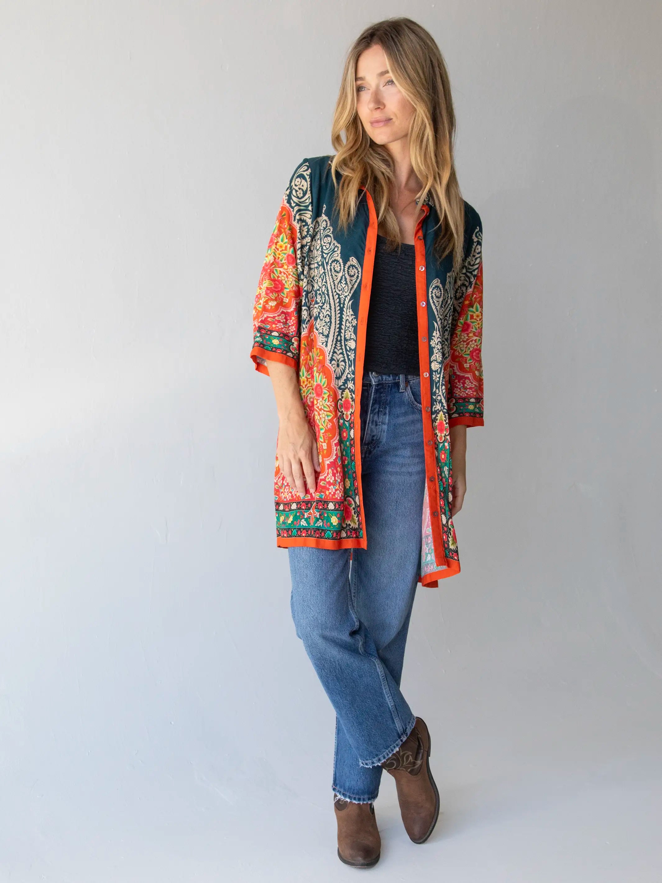 Camila Kimono - Indigo Tan Mixed Floral