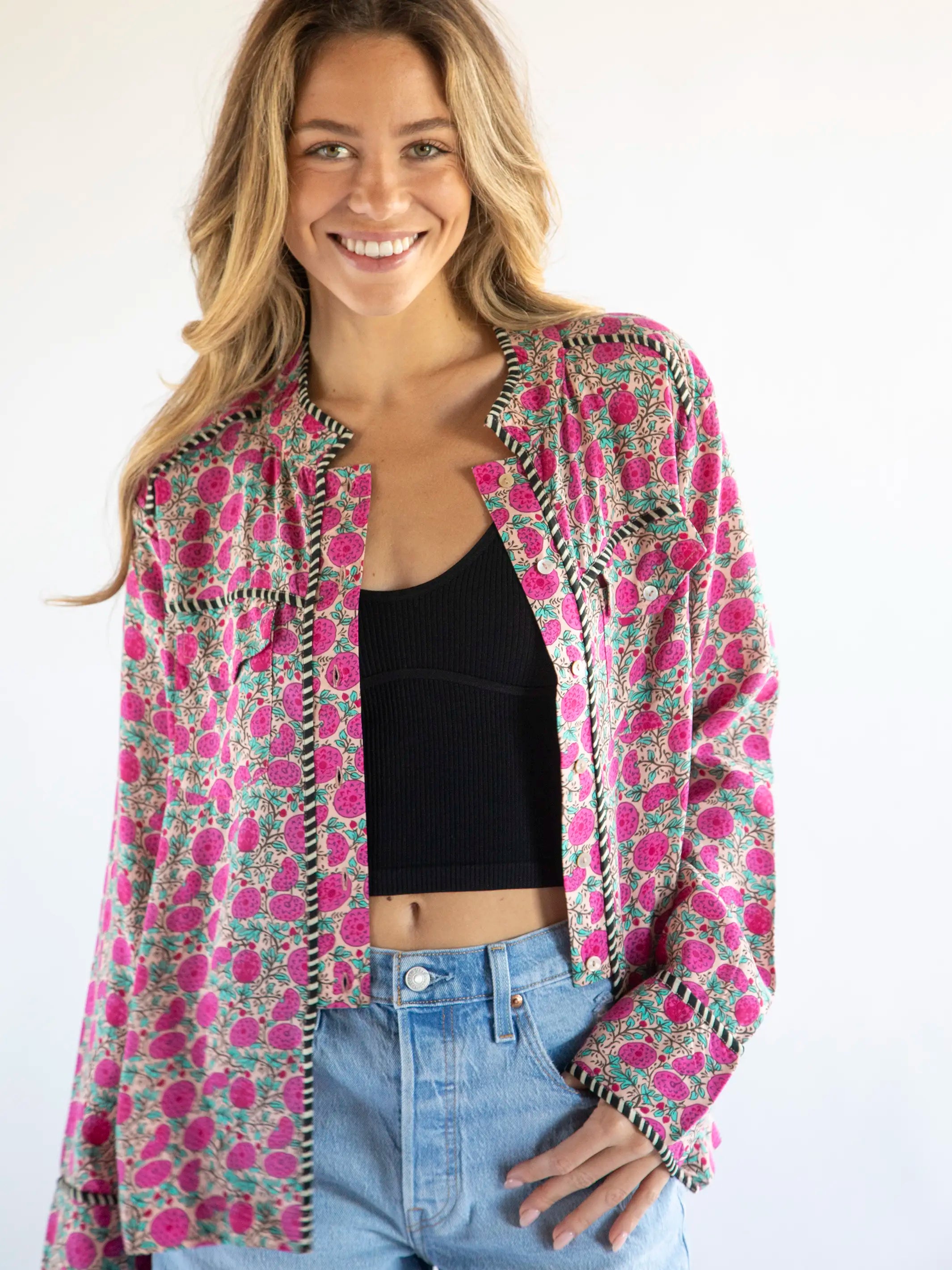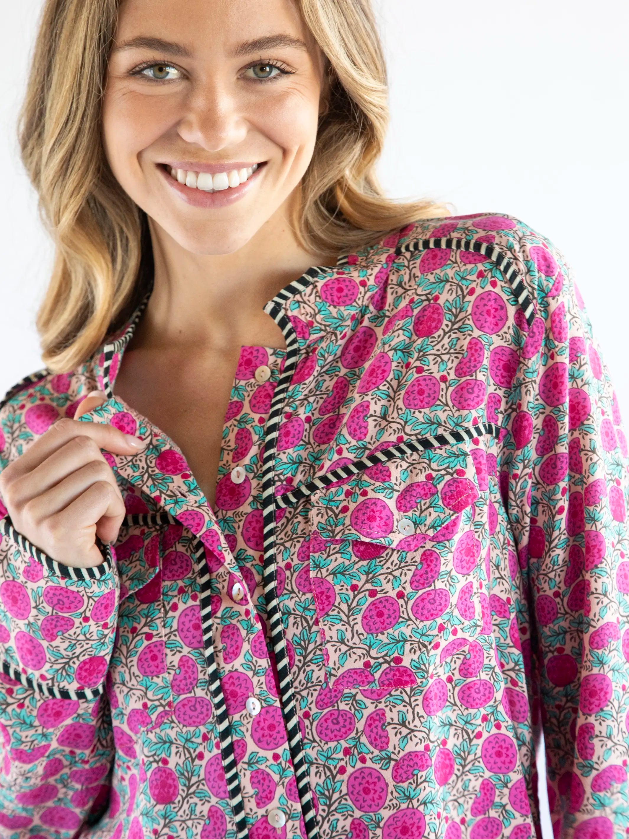 Calypso Button Down - Pink Puff Floral