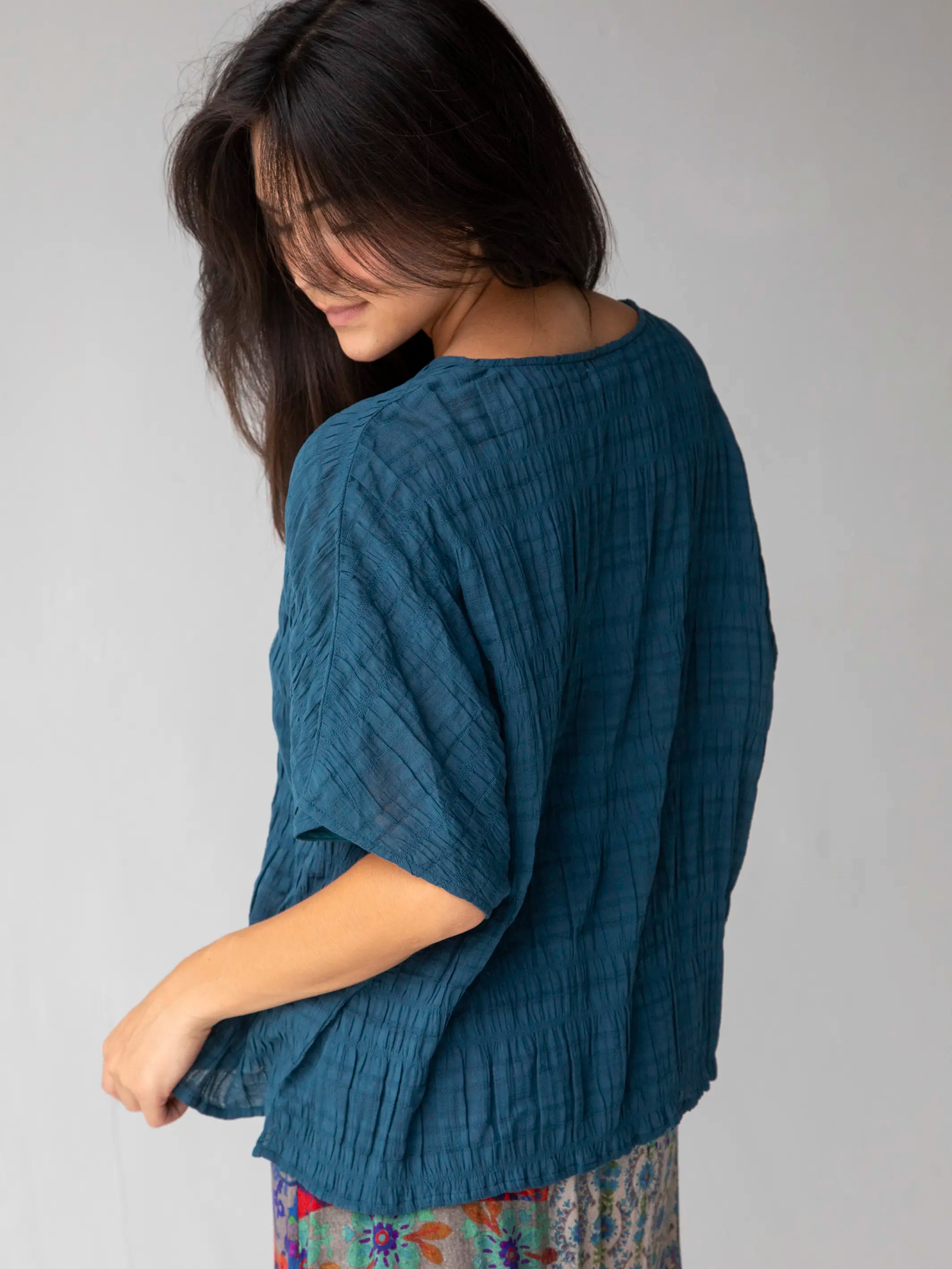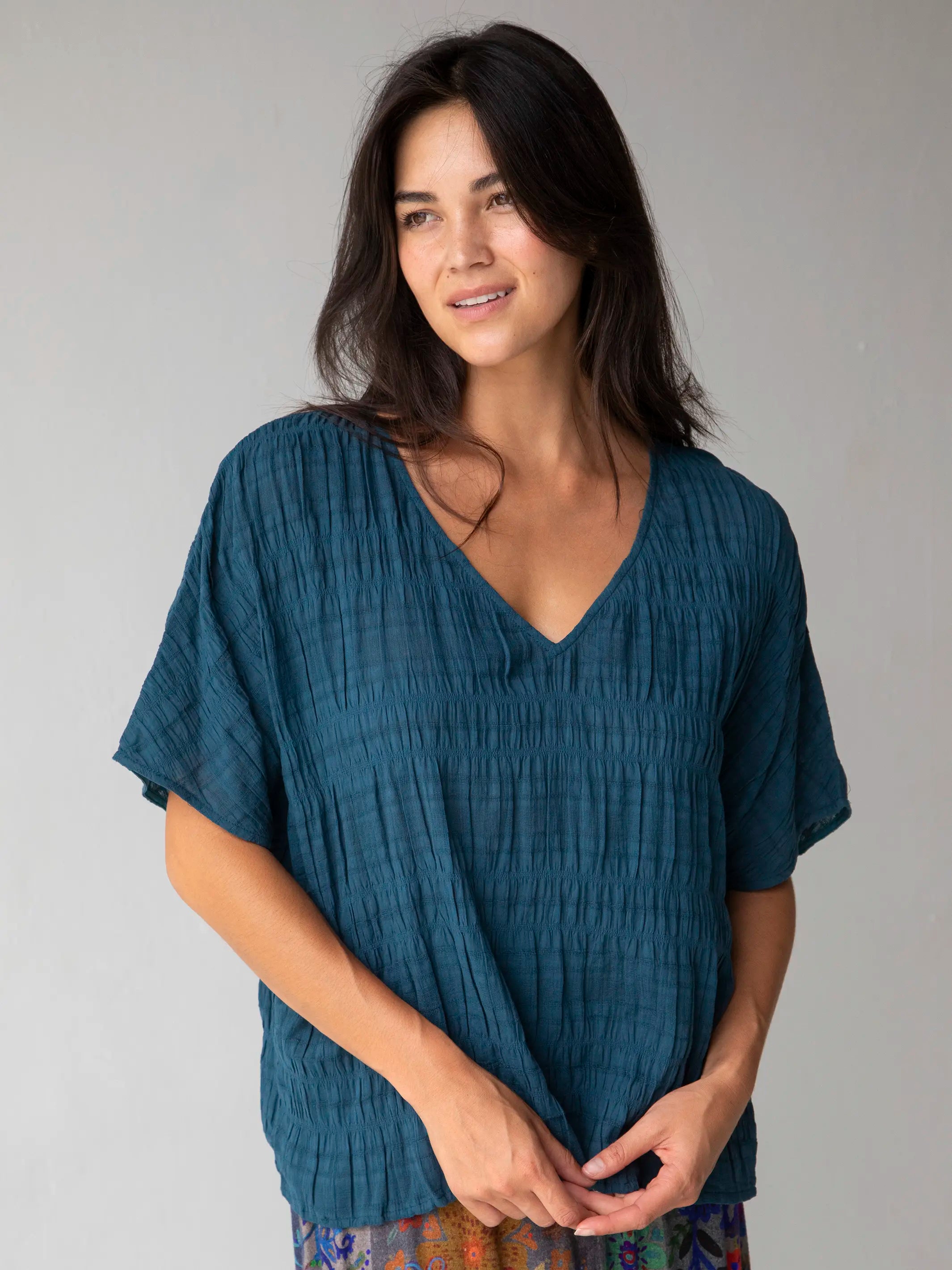 Cotton Easy V-Neck Top - Dark Teal
