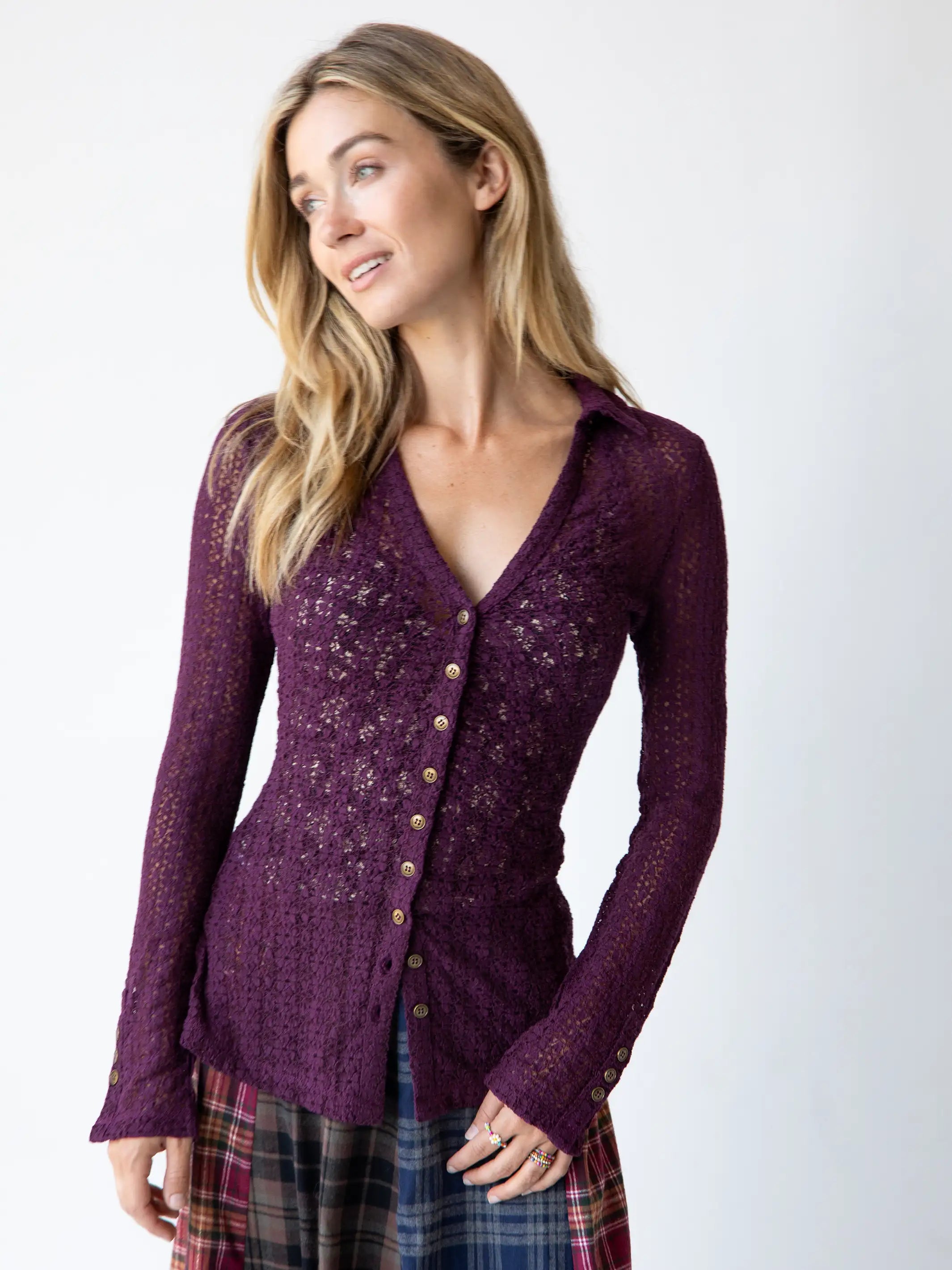 Carina Lace Top - Eggplant
