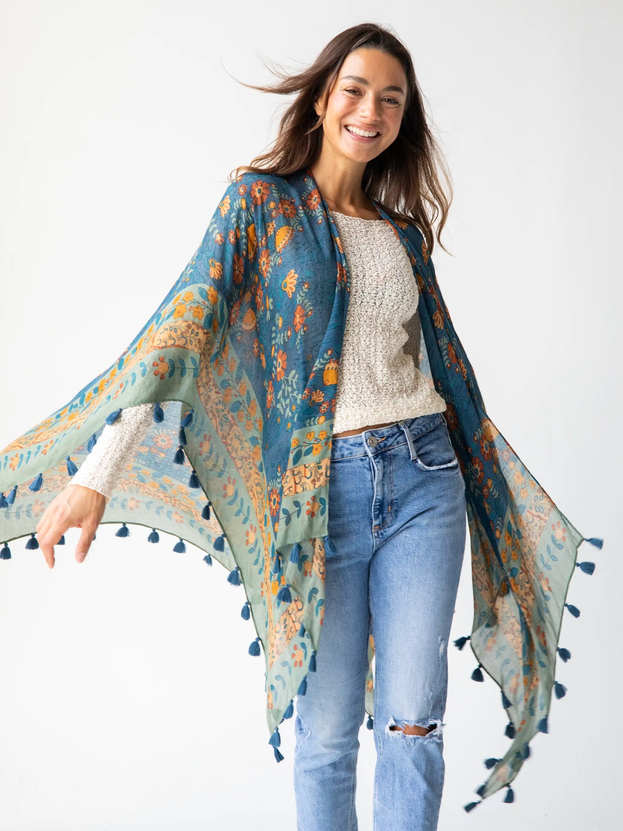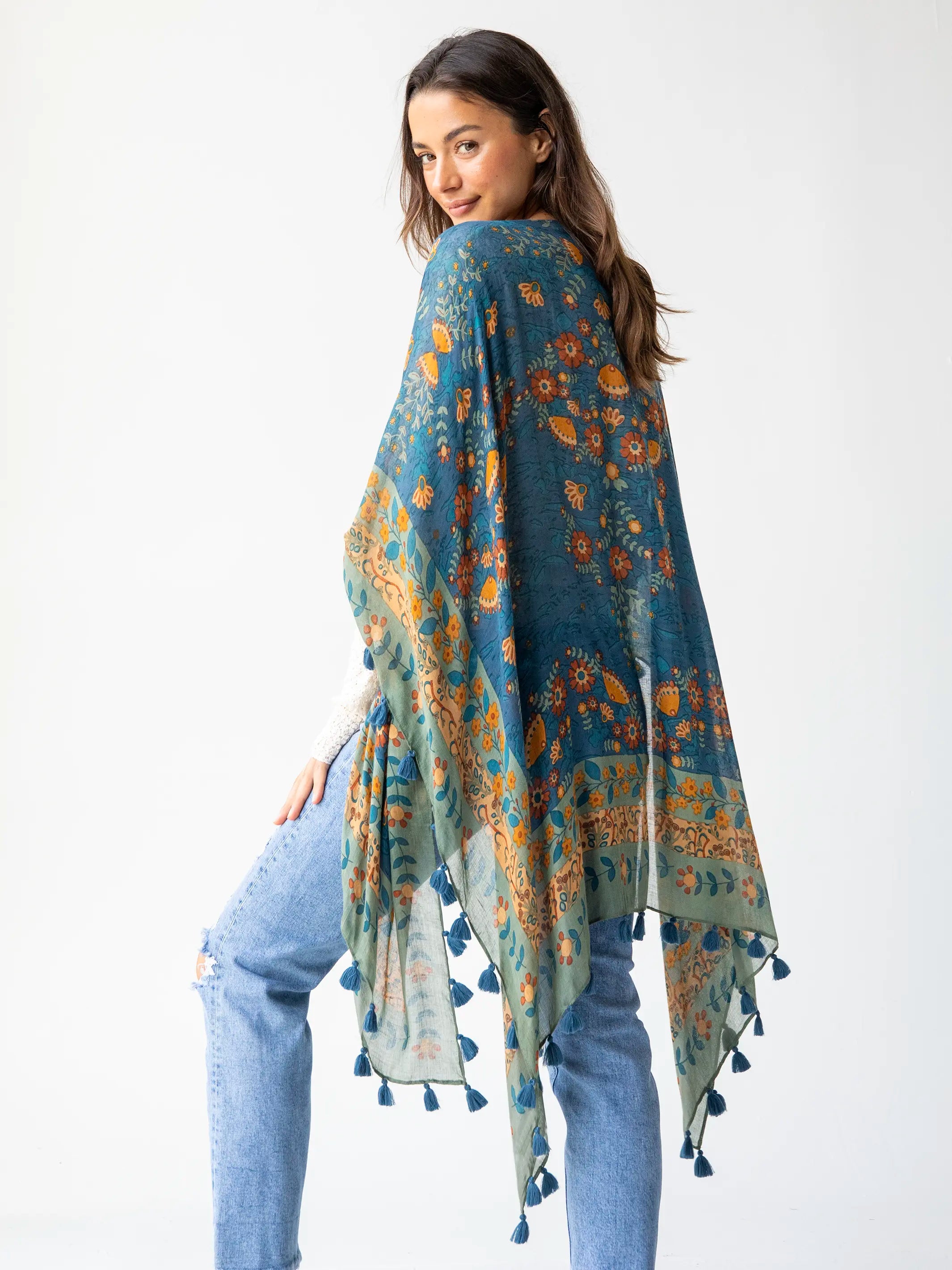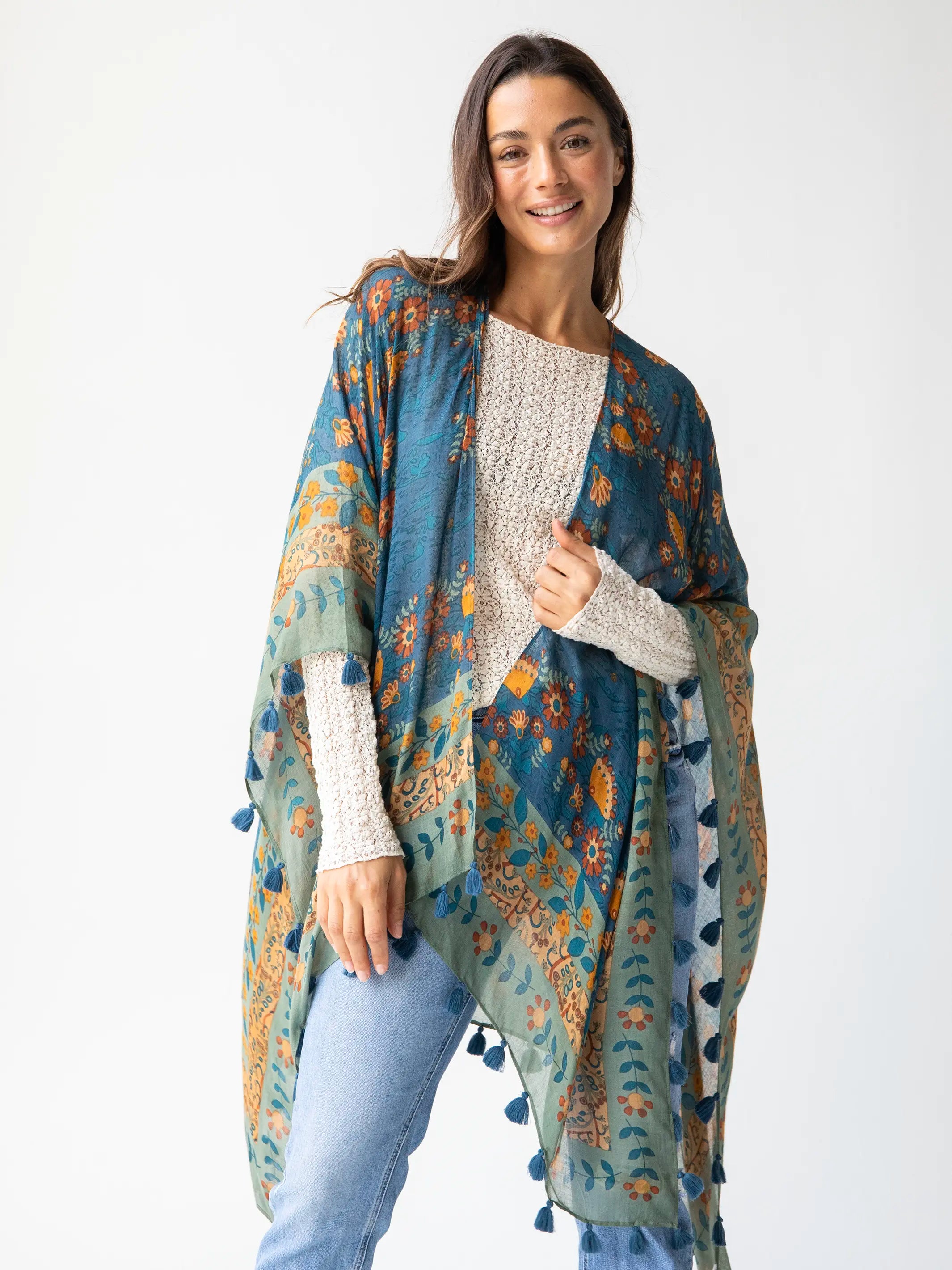 Long Cozy Blanket Kimono - Medallion Arch