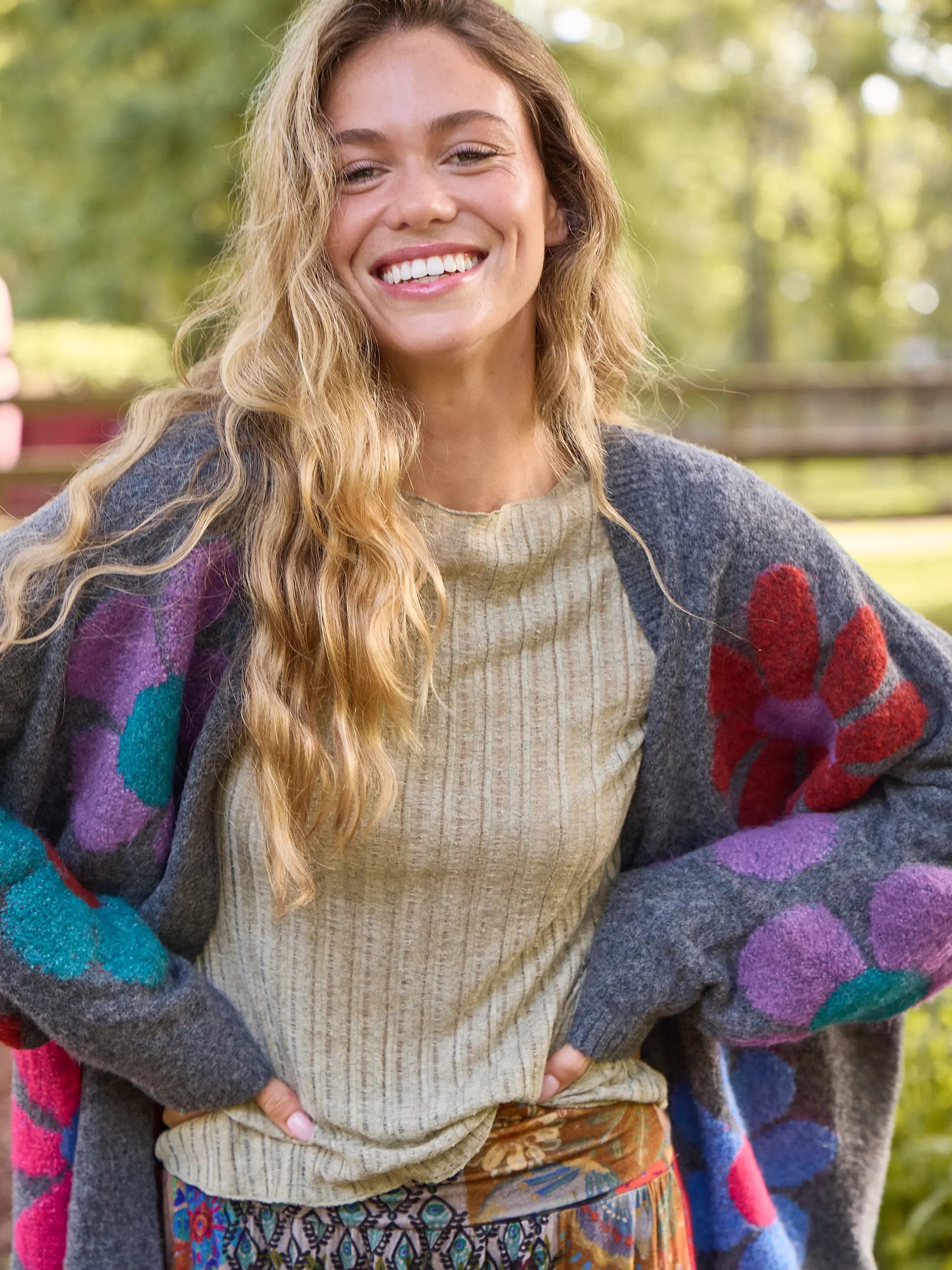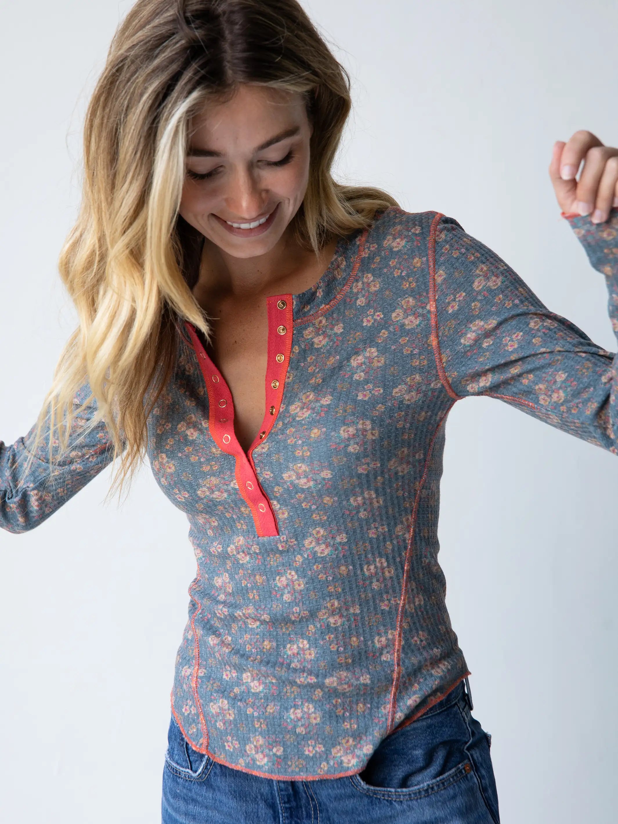 Reagan Thermal Henley - Slate Floral Blooms