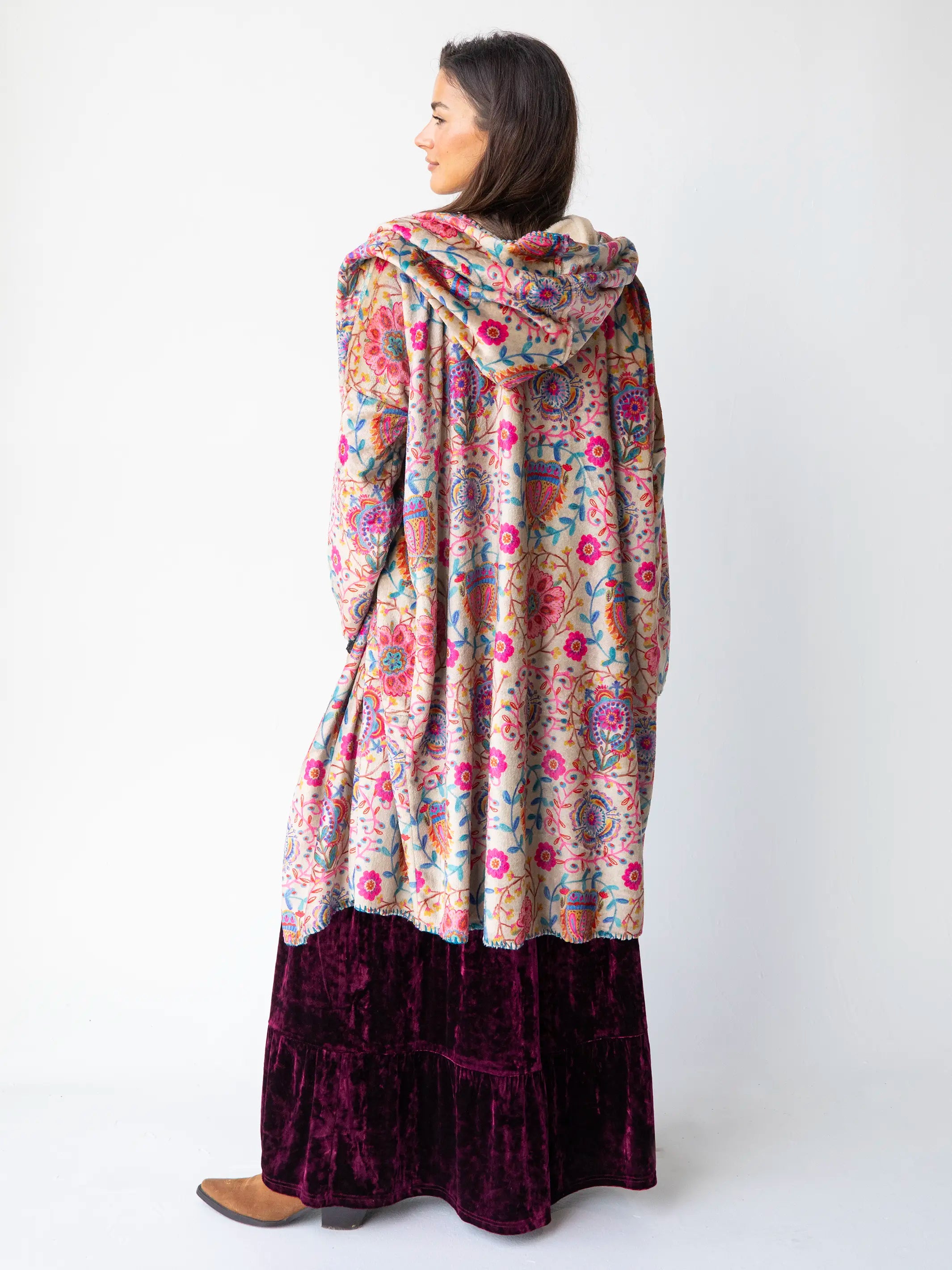 Long Cozy Blanket Kimono - Vintage Patchwork