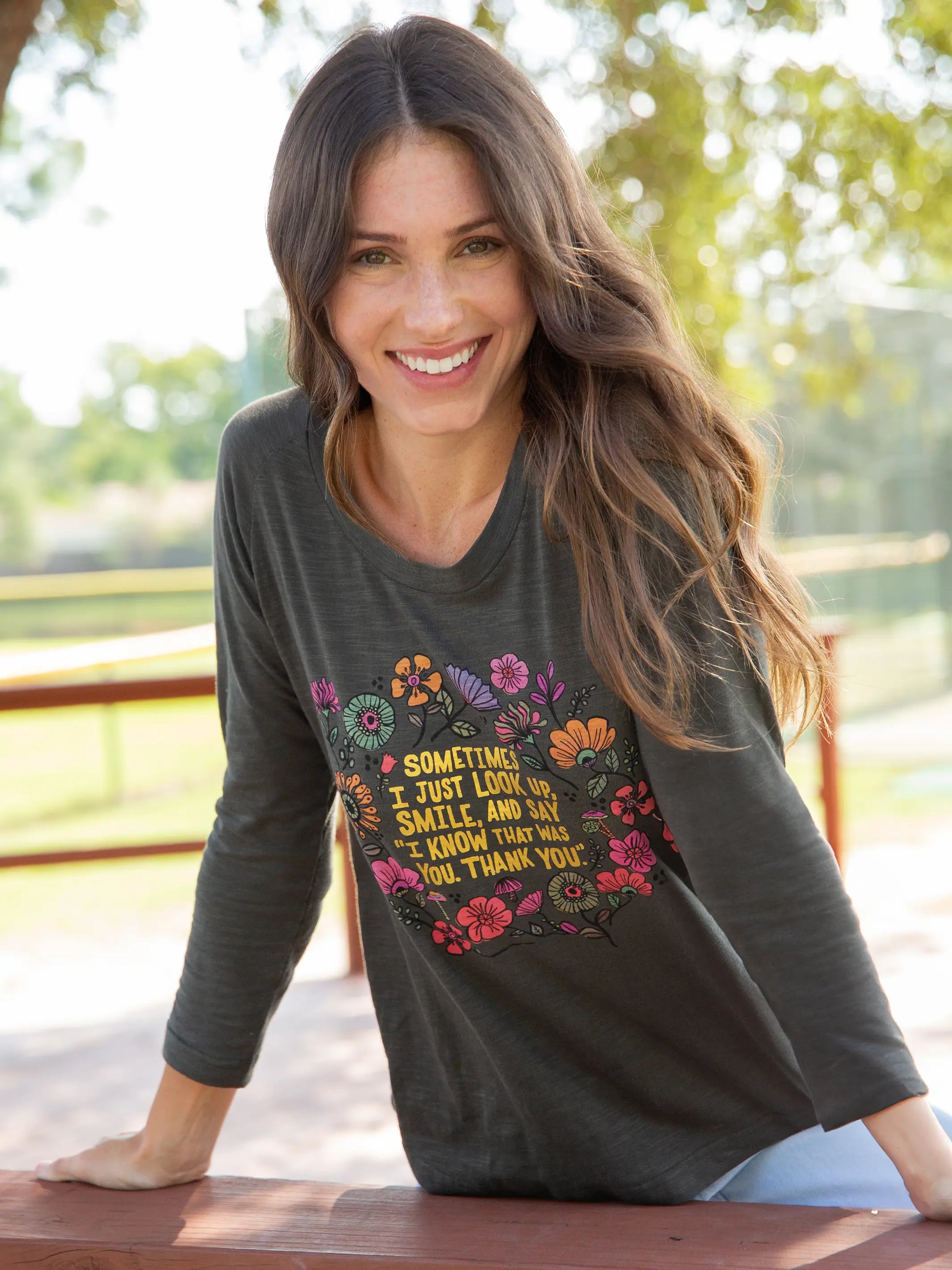 Long Sleeve Boho Cotton Tee Shirt - Look Up and Smile